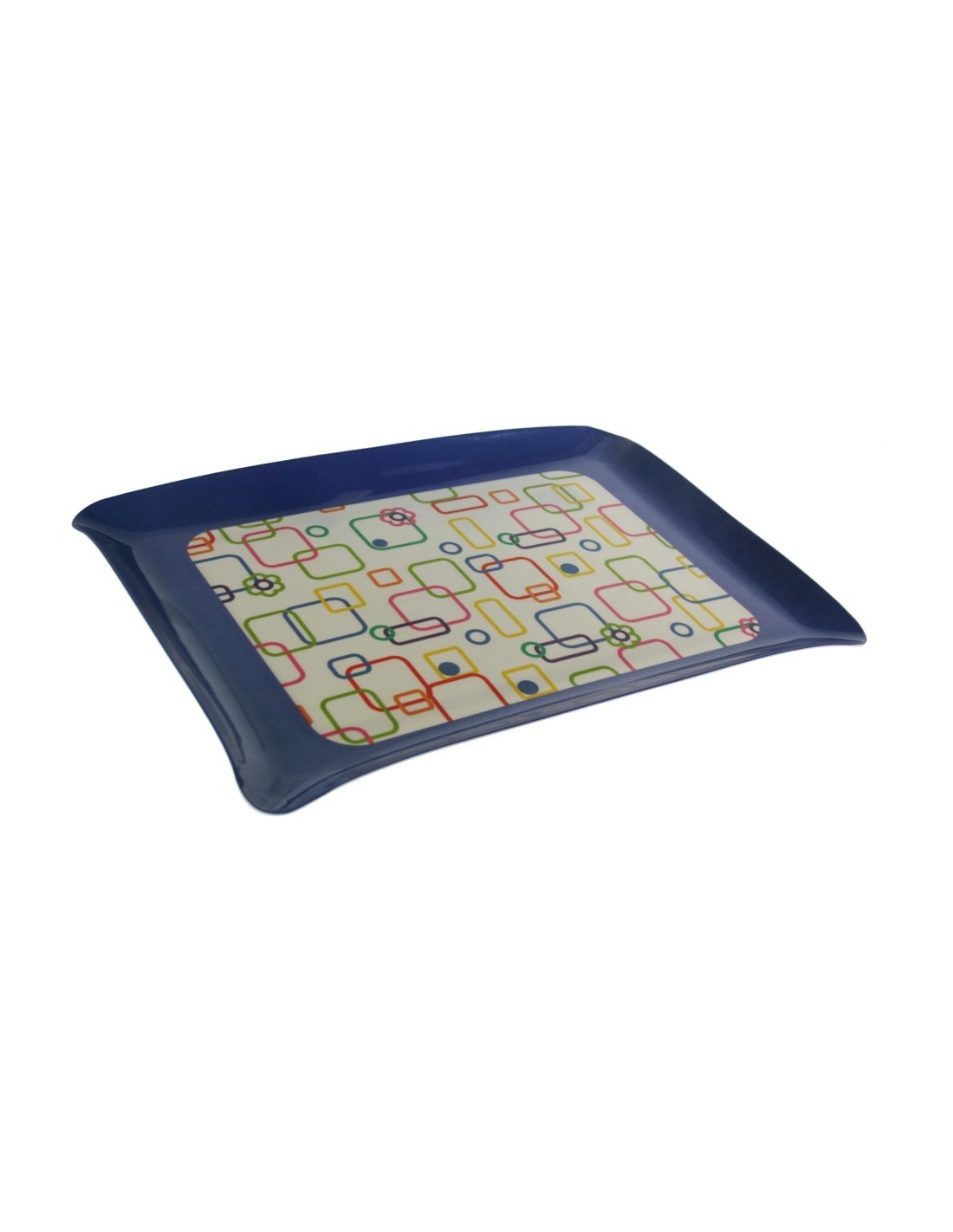 Safata de Melamina Blava amb Estampat Multicolor: Lleugera i Resistent.