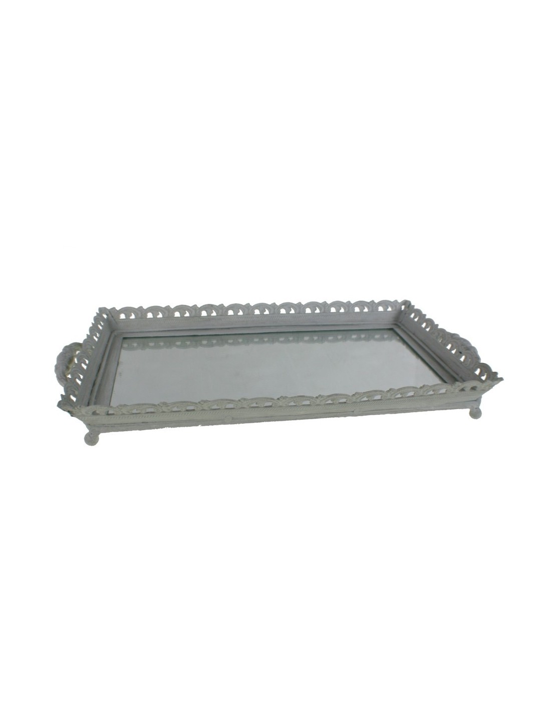 Safata de Metall Color Blanc amb Base de Cristall Estil Vintage Servei de Taula Cuina. Mides: 5x48x26 cm.