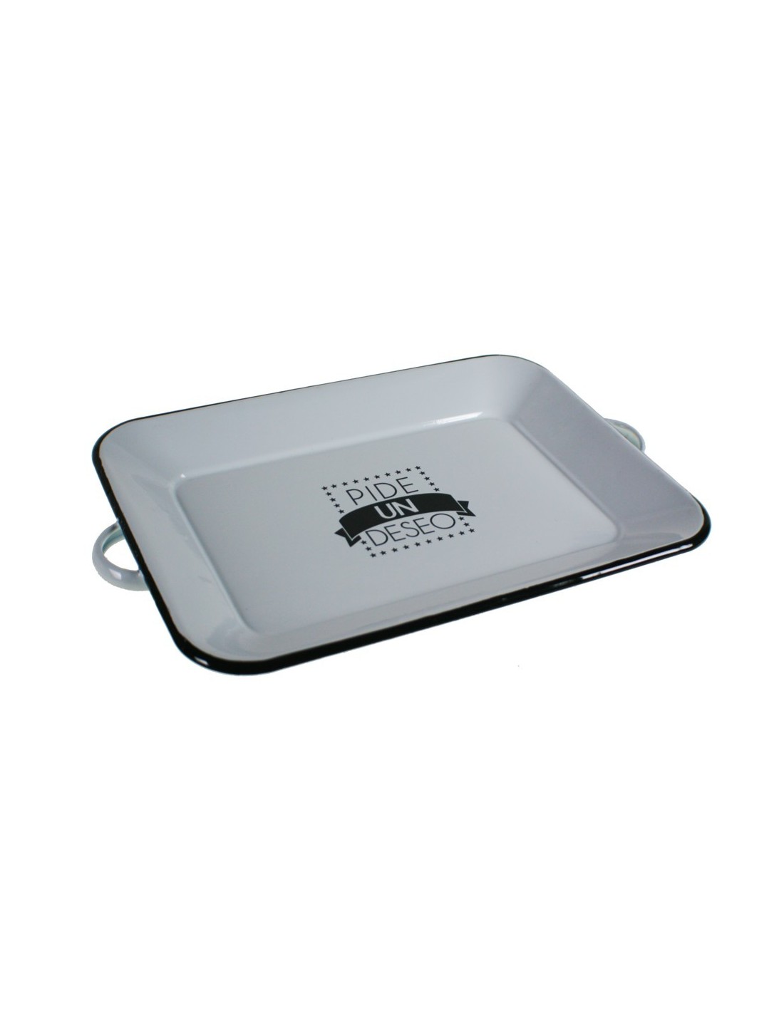 Safata Esmaltada Blanca amb Frase 'Demana un Desig': Elegància i Resistència per a la teva Cuina.