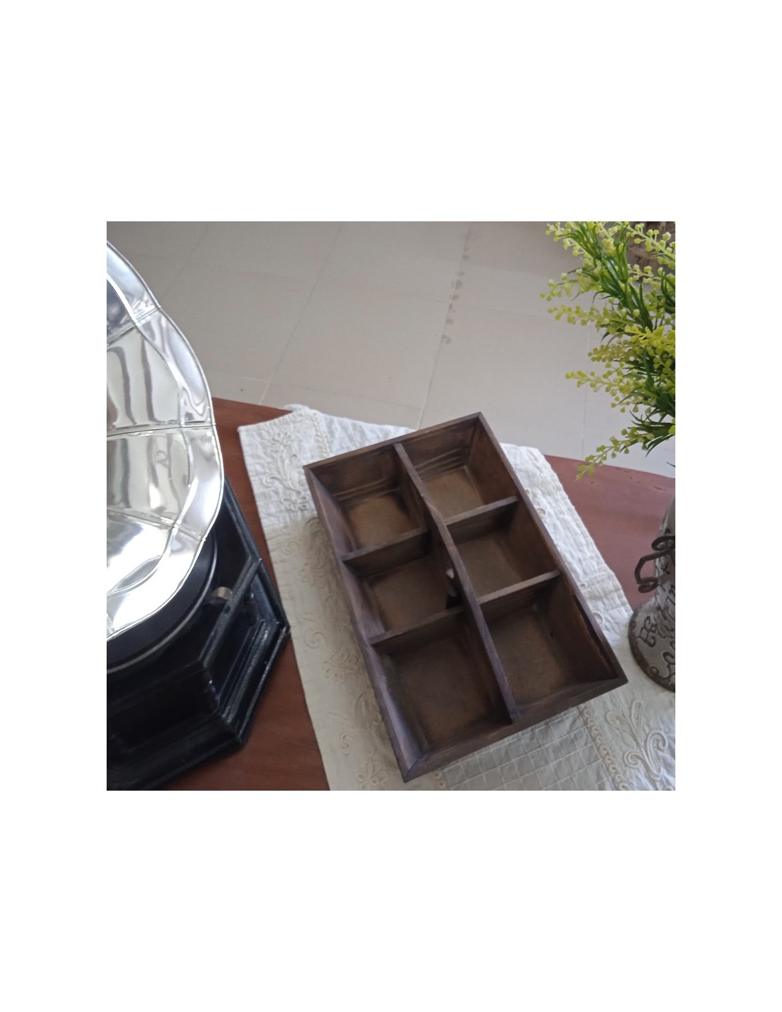 Safata de Fusta Massissa amb 6 Divisions i Nansa d'Agafament Estil Rústic Decoració Llar.Mesures: 9x45x30 cm.