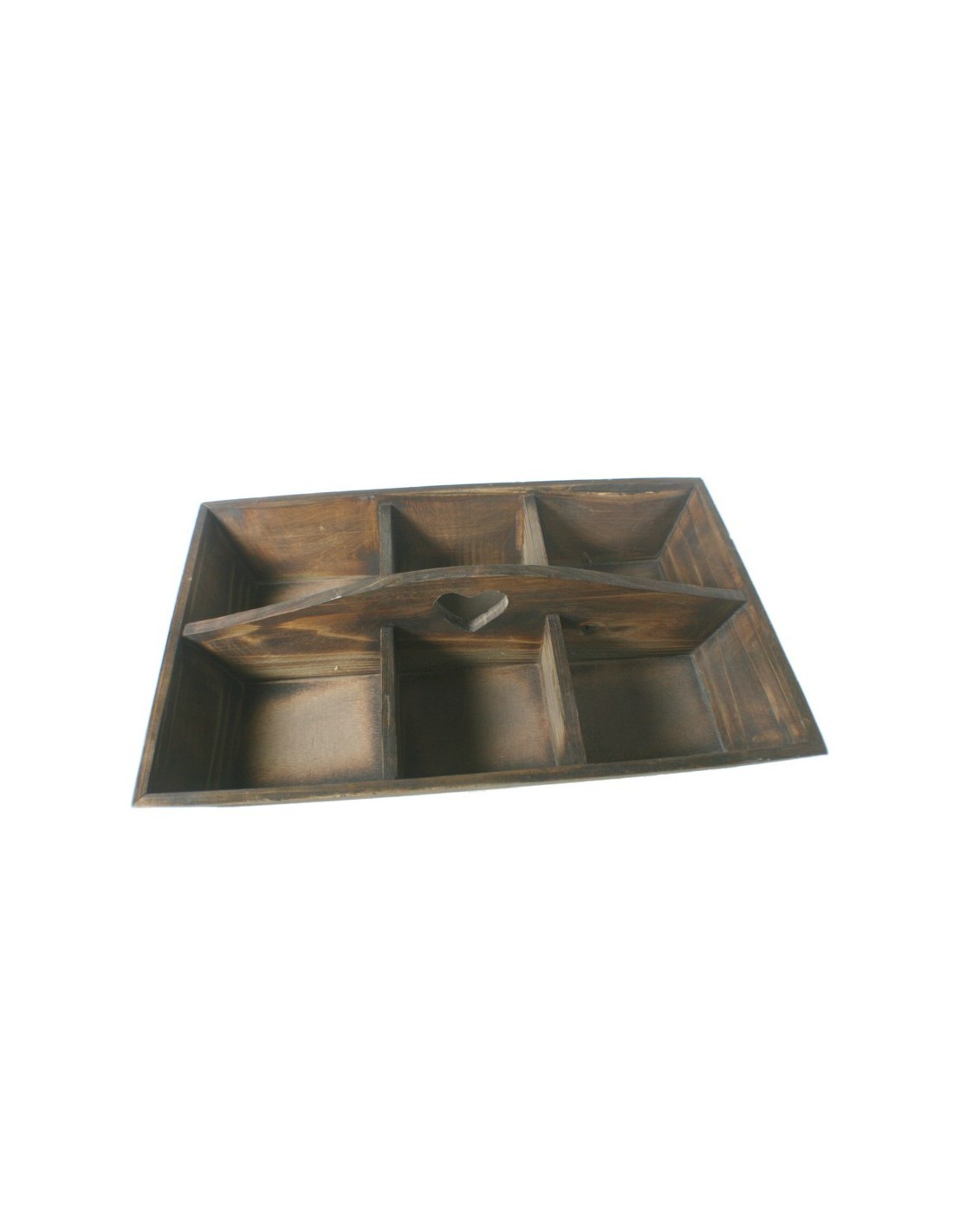Descobreix aquesta elegant safata de fusta en color noguera amb nansa central en forma de cor. Amb sis divisions intermèdies, és ideal per organitzar el teu escriptori o articles de maquillatge. Un toc d'estil i funcionalitat per a casa teva!