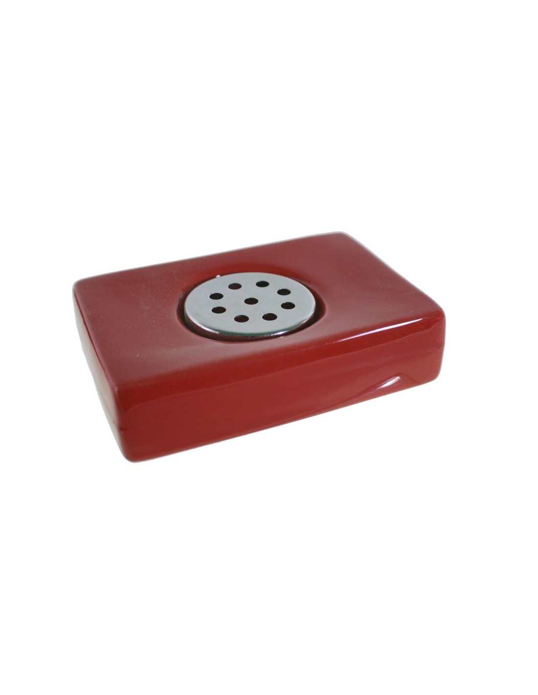 Sabonera, Dispensador per a Pastilla de Sabó de Ceràmica amb Drenatge Inox. Color vermell. Mides: 11,5x7,5 cm.