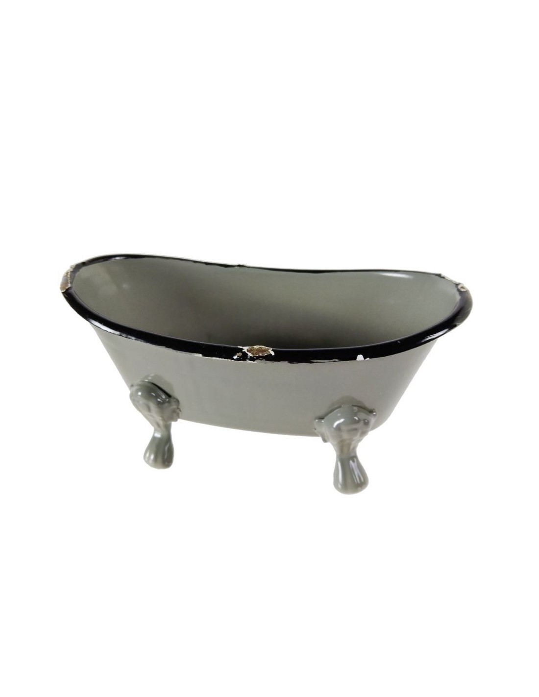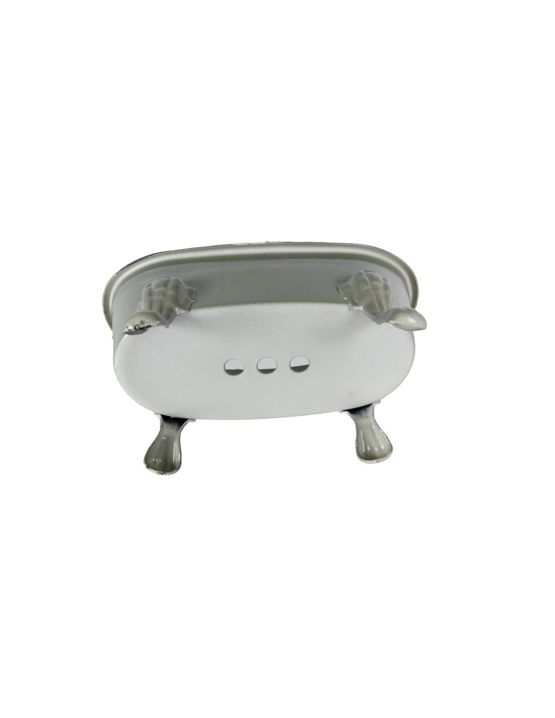 Aquesta sabonera de metall en to gris verdós, amb forma de mini banyera, és un accessori original i encantador que aporta un toc retro al teu bany, cuina o aigüera. El seu disseny permet que l'aigua dreni, mantenint el sabó sec i perllongant-ne la durada.