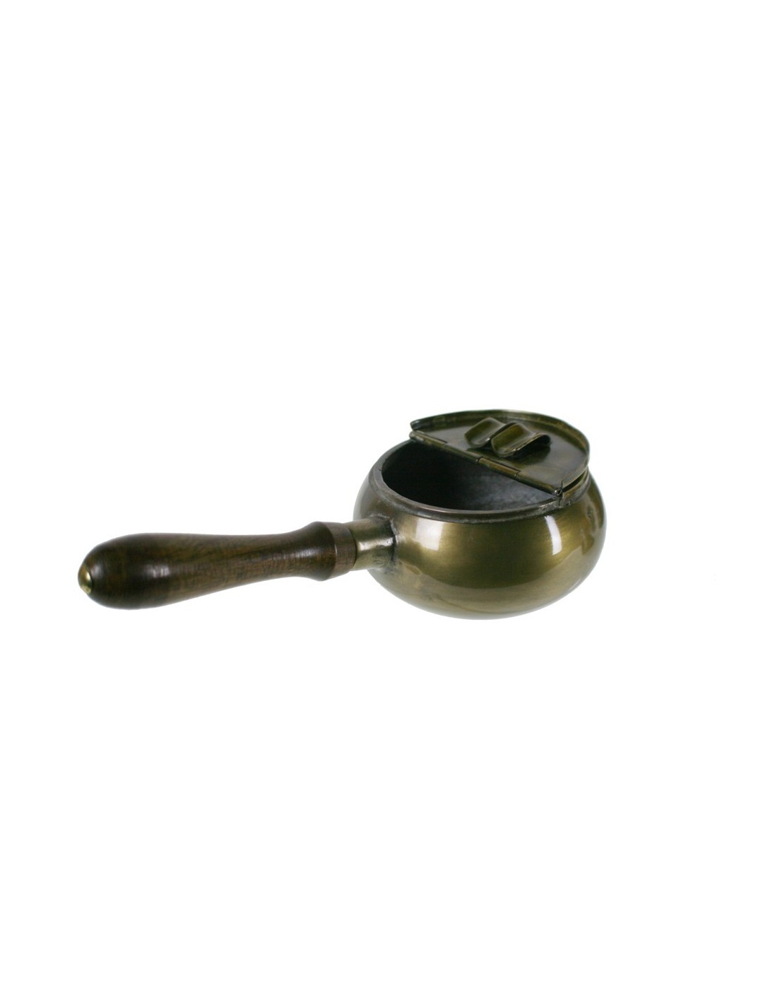 Cendrer de metall acabat en color bronze amb mànec de fusta. Regal ideal per sorprendre un fumador.
