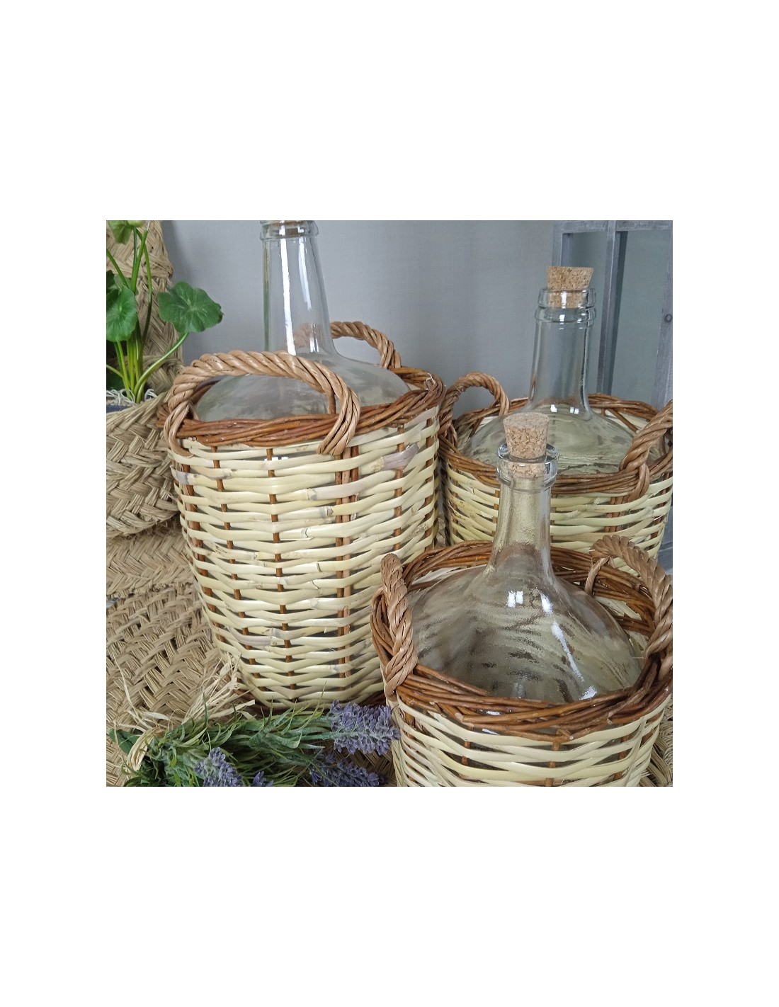 Garrafa Damajuana Artesanal de Canya sense Tapa i Vidre 4 Litres per a Emmagatzemar Vi o Licor. Mides totals: 37xØ24 cm.