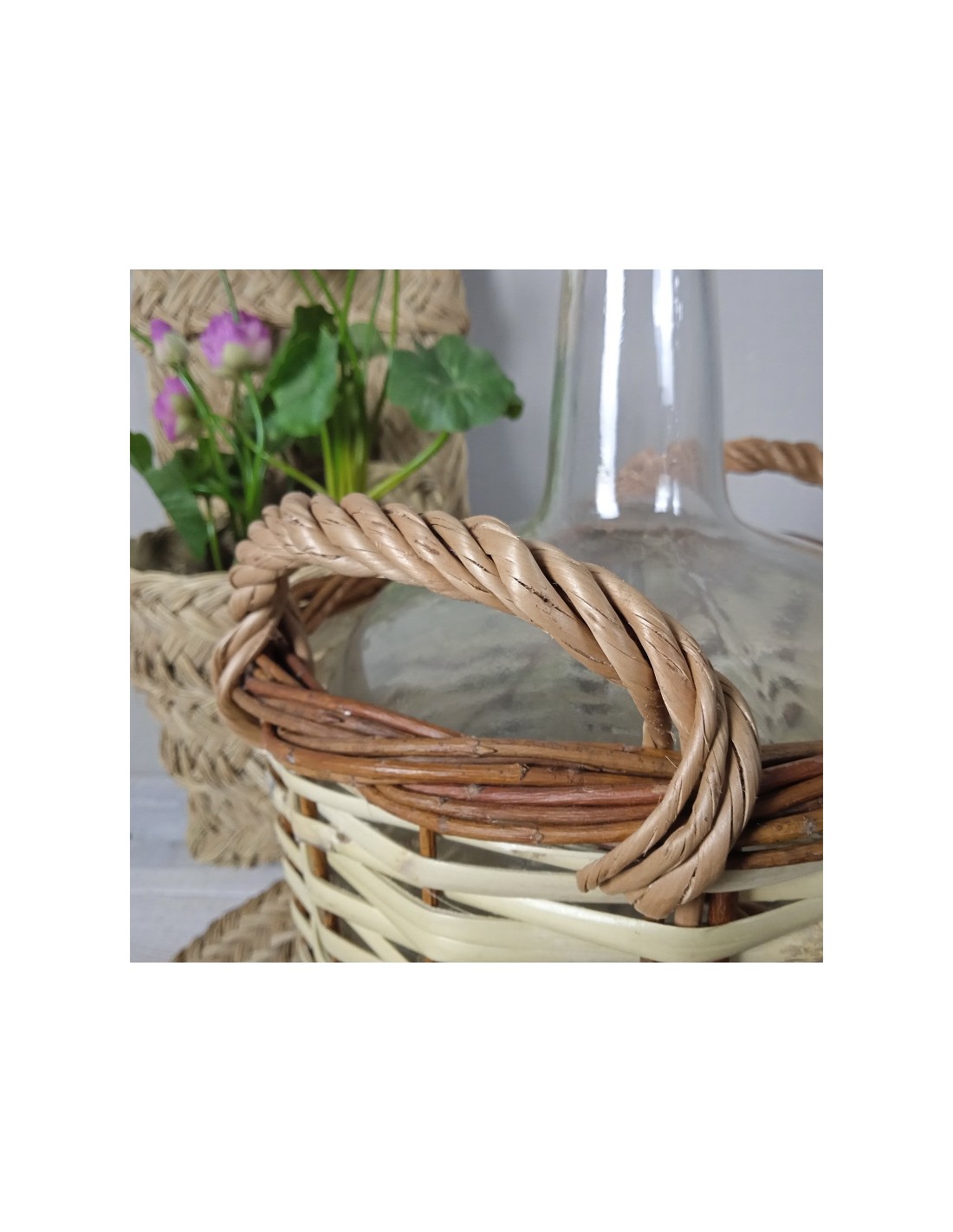 Aquesta garrafa damajoana de fabricació artesanal, elaborada amb canya i vidre, és perfecta per emmagatzemar vi i licors. Ideal pels amants de les begudes artesanals o la compra a granel, combina tradició i respecte pel medi ambient.