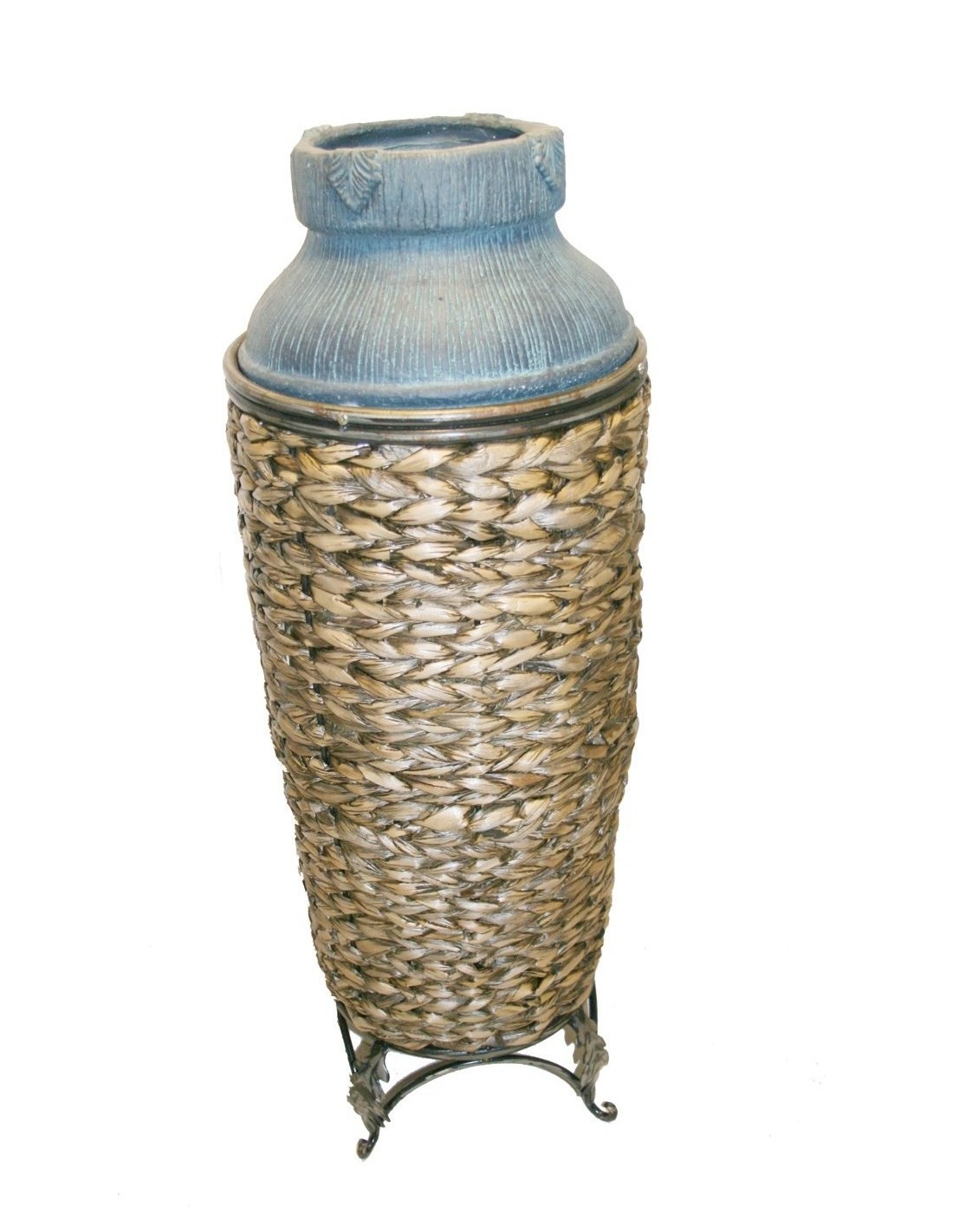Gerra de Ceràmica Decorada amb Ratan i base de Ferro Decoració Rústica per a la Llar. Mides: 75x25x25 cm.