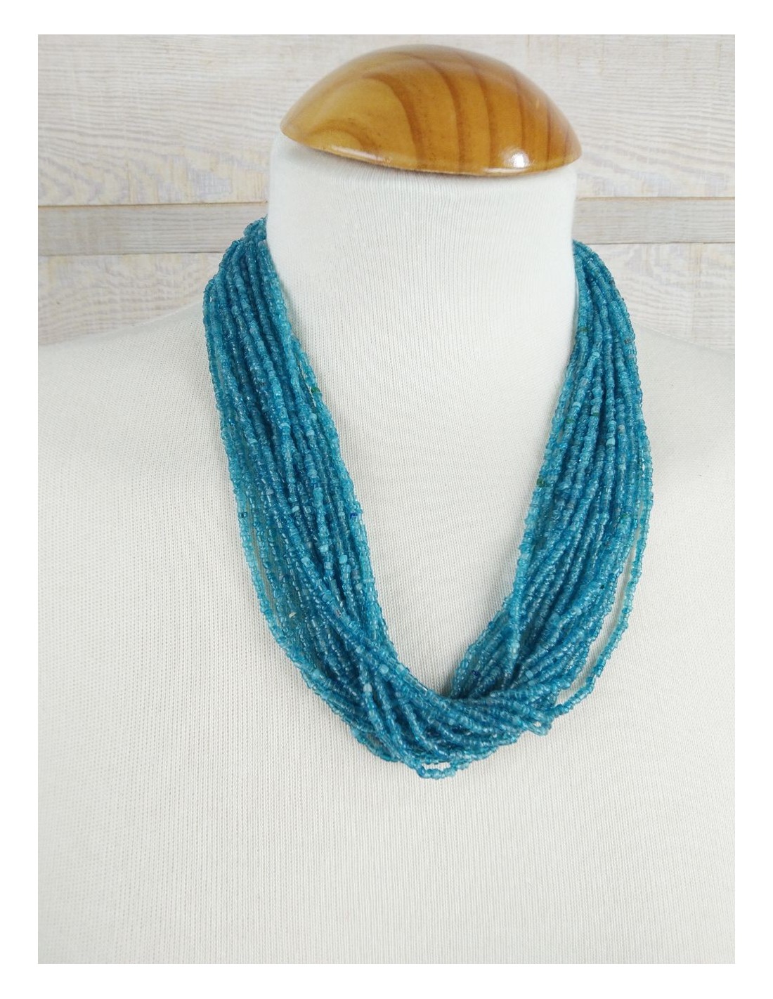 Collar indi artesanal per dona tancament amb moneda original color blau. Mesures: 52 cm.