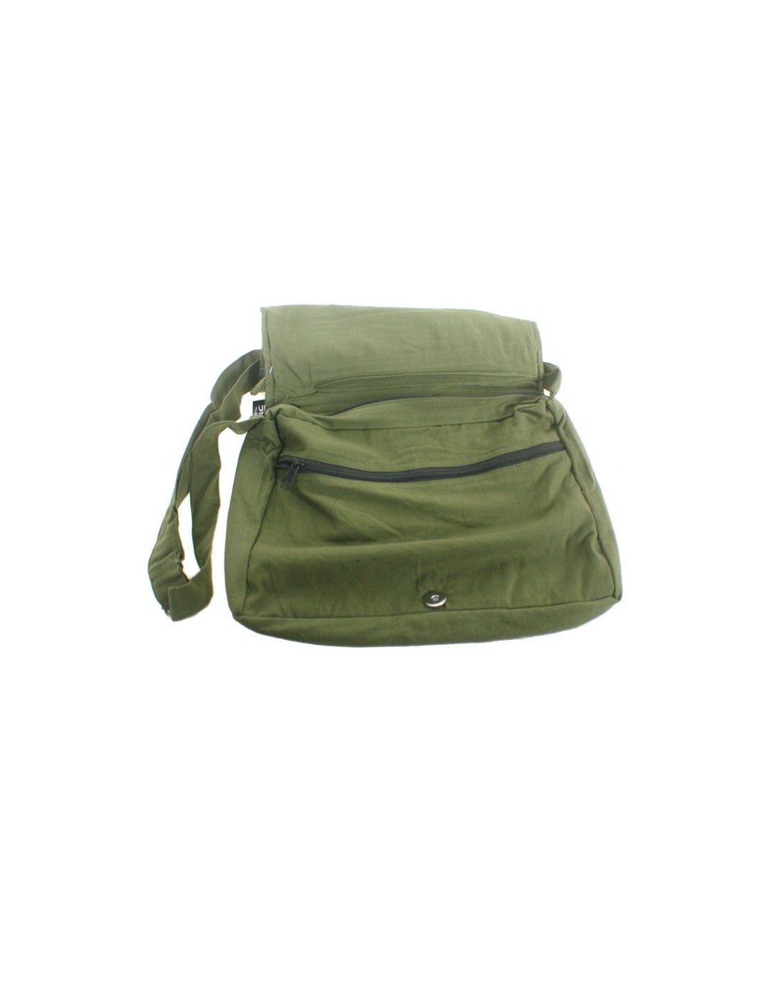 Bossa bandolera multiús de color verd i solapa interior amb dos compartiments amb tancament en cremallera, disseny exclusiu ètnic brodat hippie. Aquesta peça ha estat elaborada artesanalment al Nepal. Aquesta bossa es pot convertir en un bàsic per diari en el que podràs portar els teus objectes.