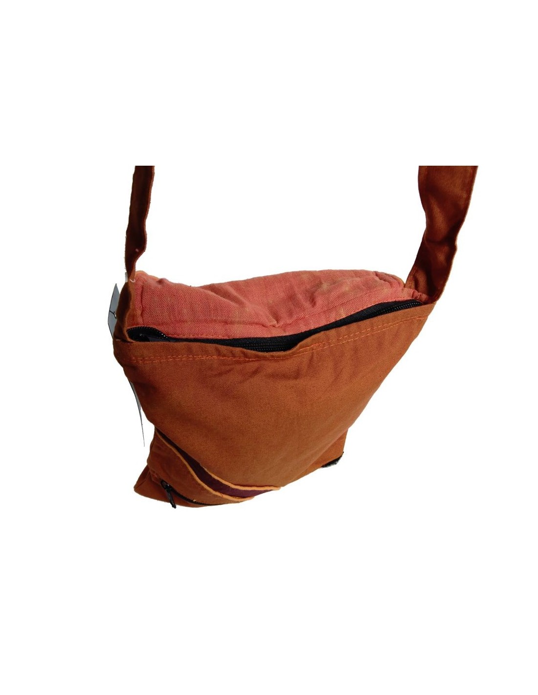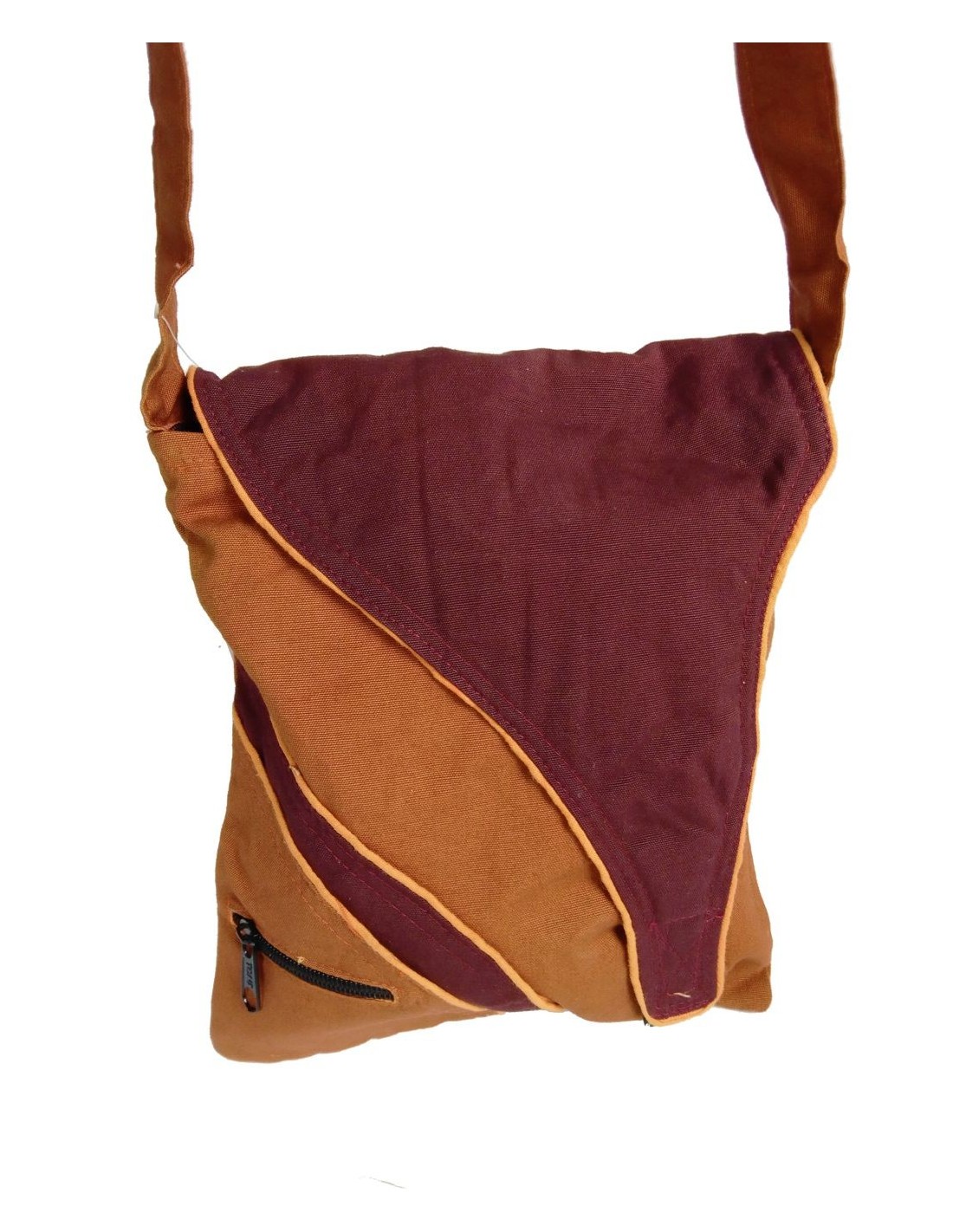 Bossa bandolera petit multiús de color marró amb dos compartiments i tancament en cremallera, disseny exclusiu ètnic brodat multicolor hippie. Aquesta peça ha estat elaborada artesanalment al Nepal. Aquesta bossa es pot convertir en un bàsic per diari en el que podràs portar els teus objectes.