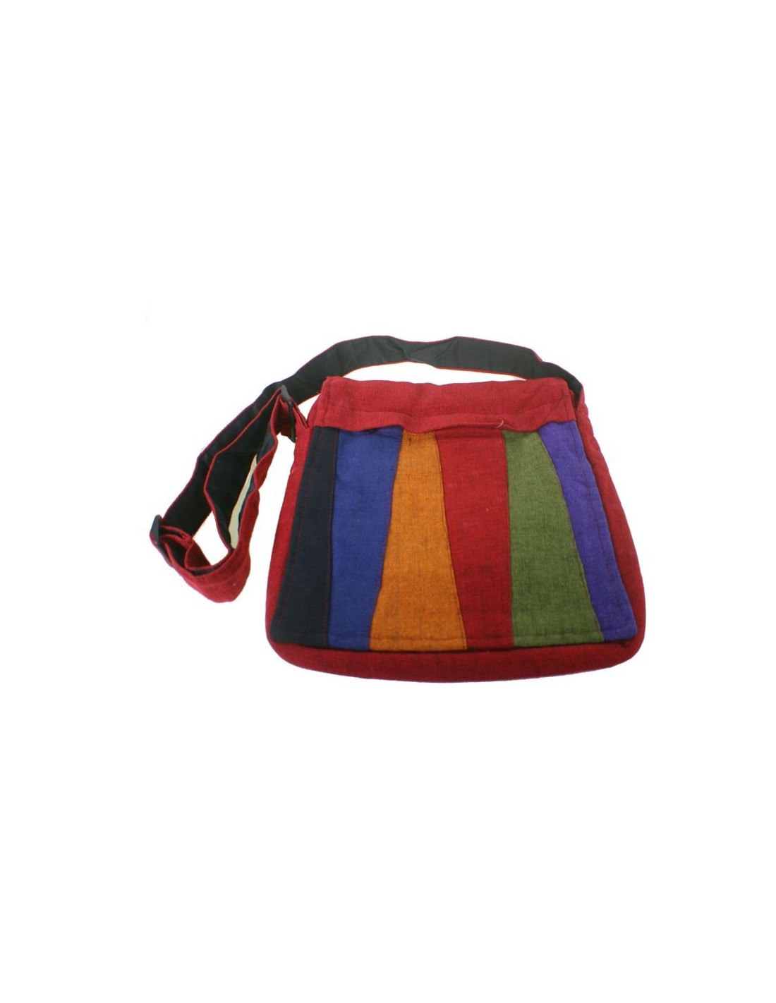 Bossa multiús disseny ètnic hippie amb solapa i nanses de teixit cotó color granat. Mesures: 29x35 cm. Aprox.