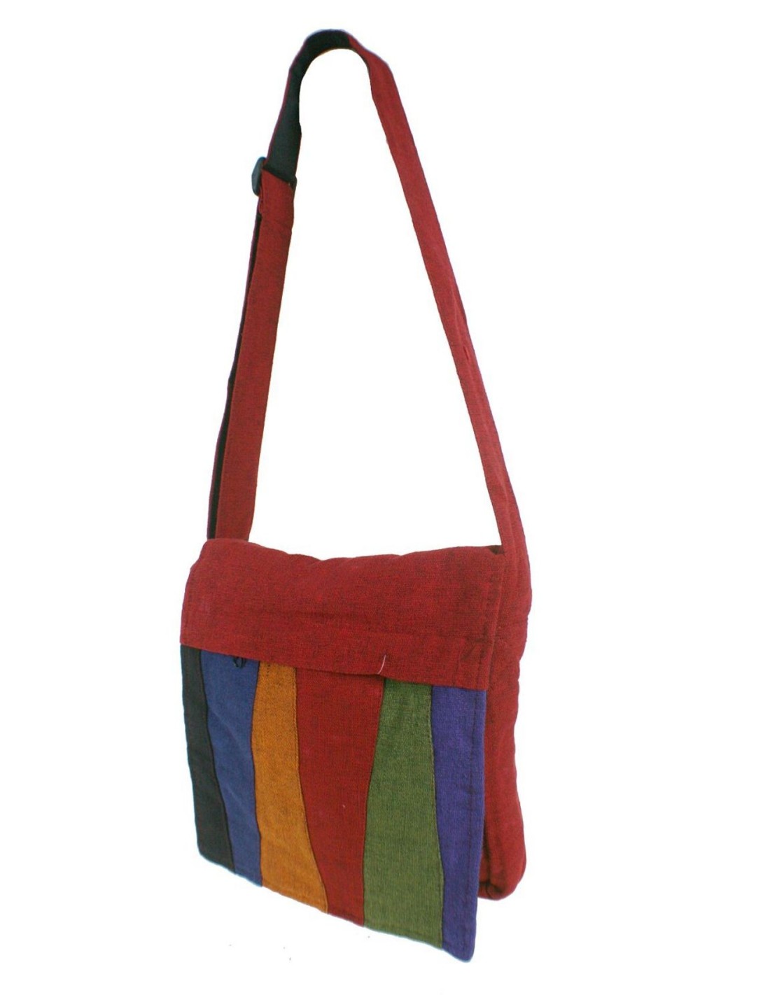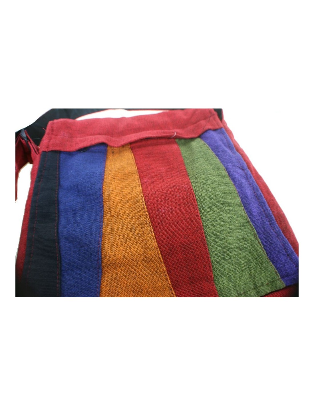 Bossa bandolera multiús de color granat i solapa en interior amb dos compartiments amb tancament en cremallera i butxaca interior, disseny exclusiu ètnic hippie. Aquesta peça ha estat elaborada artesanalment al Nepal. Aquesta bossa es pot convertir en un bàsic per diari en el que podràs portar els teus objectes.
