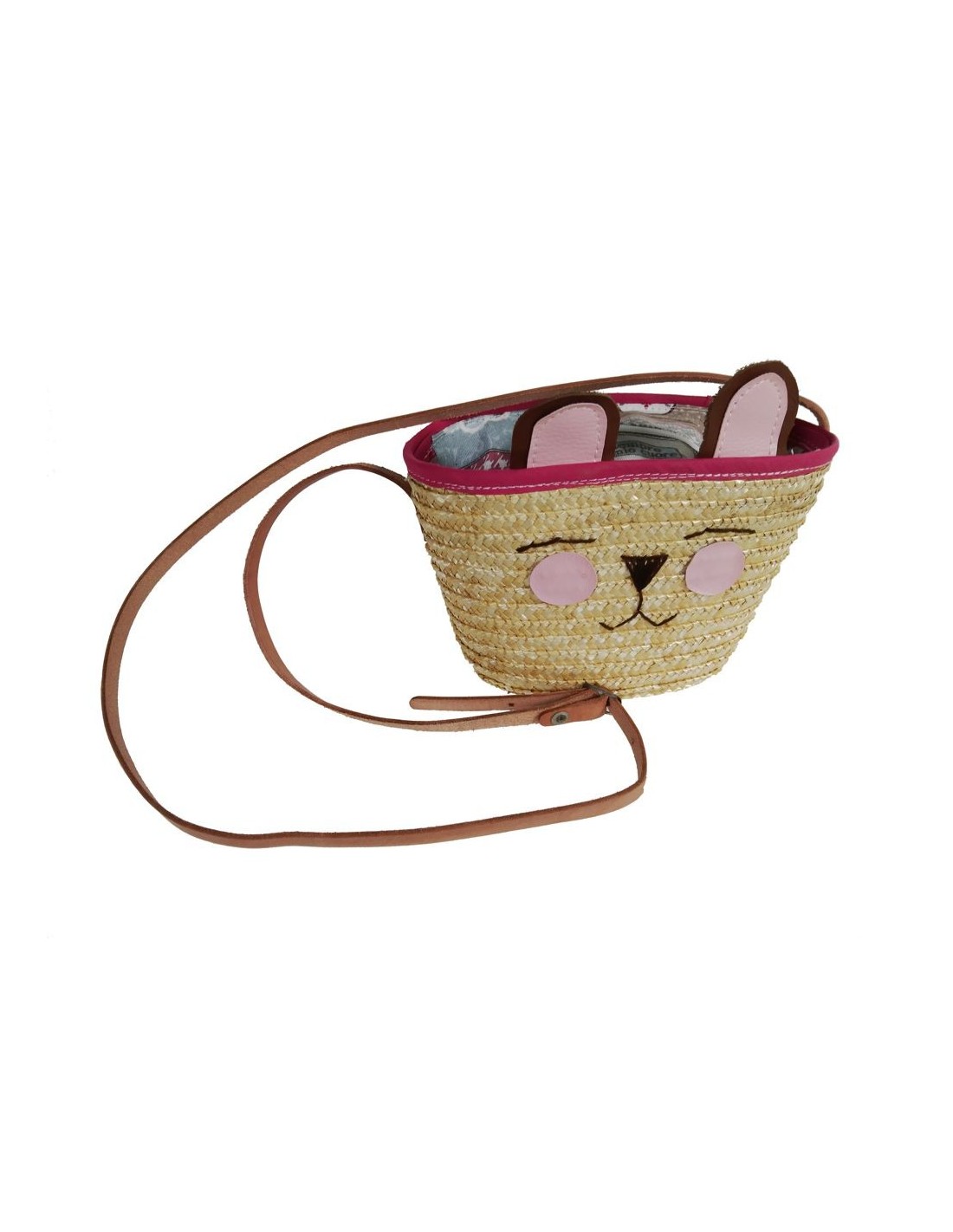 Bossa bandolera infantil de fibra de palmell i tancament cremallera, complement de moda infantil. És perfecte per guardar les cosetes preferides.