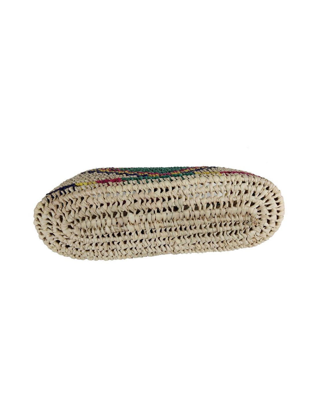 Amb la seva mida àmplia i la seva estructura resistent, és ideal per portar a la platja amb les tovalloles i tot el que necessites, o per fer la compra amb estil. El seu detall de colors teixits a mà al frontal i del darrere la converteixen en un accessori alegre i cridaner. Les nanses de cuir li aporten un toc elegant i còmode alhora.