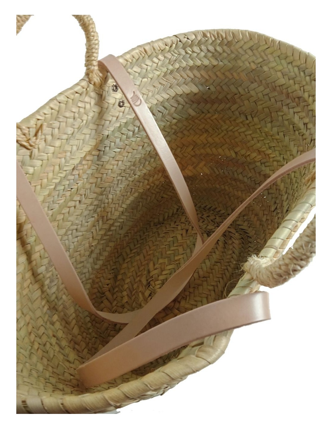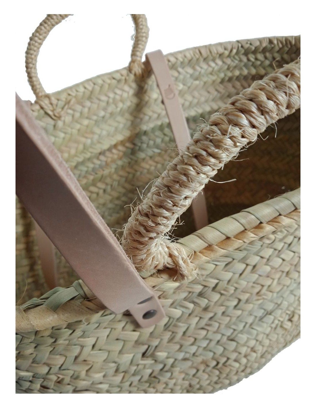 Cabàs Mallorquí de platja en fibra de palmell amb nanses de corda i corretges per a bandolera de cuir, cistella bandolera producte artesanal de gran capacitat.