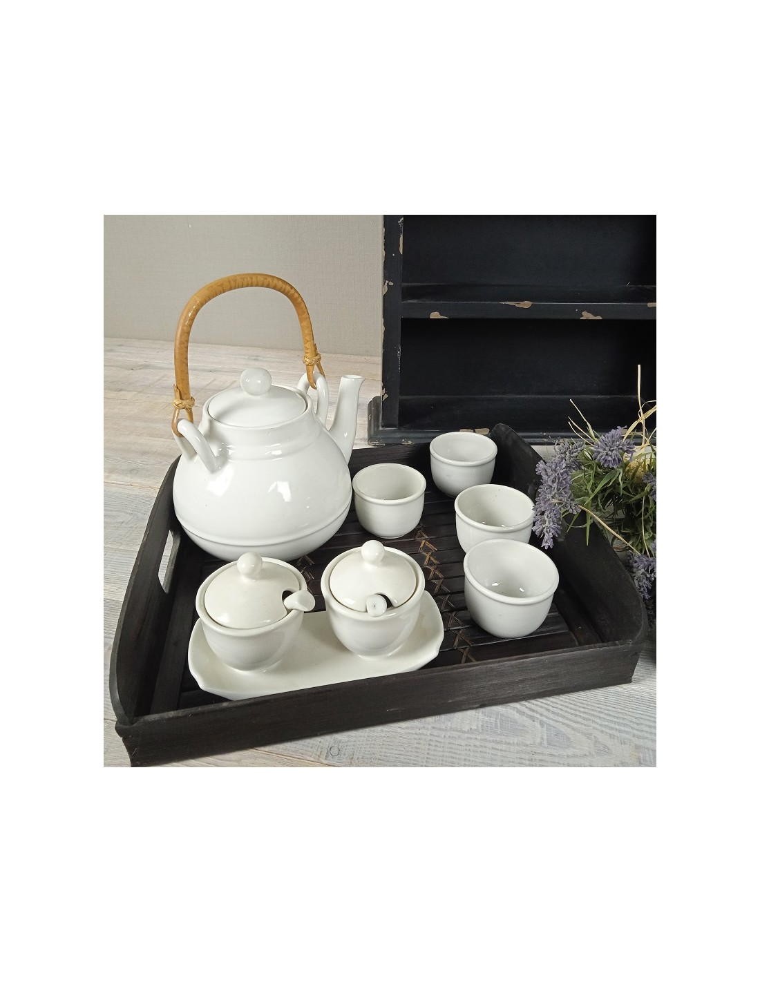 Joc de ceràmica per a prendre el te o cafè en companyia dels teus amics o familiars, d'estil clàssic amb safata de bambú. Un regal elegant i original.