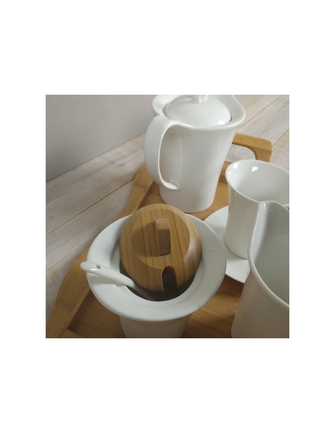 Si t'encanta la senzillesa i la bellesa a taula, aquest joc de cafè és per a tu. La combinació de la ceràmica blanca amb la fusta de bambú és simplement perfecta: minimalista, acollidora i amb un toc molt nòrdic.