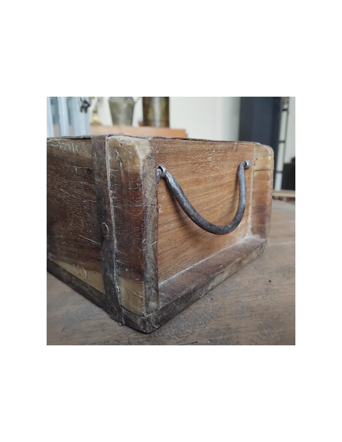 Aquesta caixa de fusta artesanal d´acàcia és una peça única que combina tradició i funcionalitat. Fabricada en fusta massissa amb reforços metàl·lics, conserva el seu aspecte envellit original, fet que la converteix en un article de gran valor estètic i decoratiu.