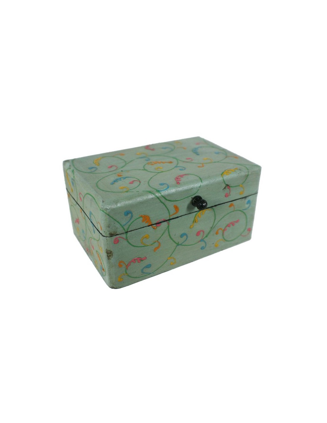 Caixa de fusta pintada tons verds i decoració amb pintura repujada. Original de l'Índia.