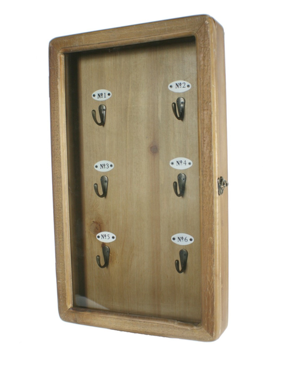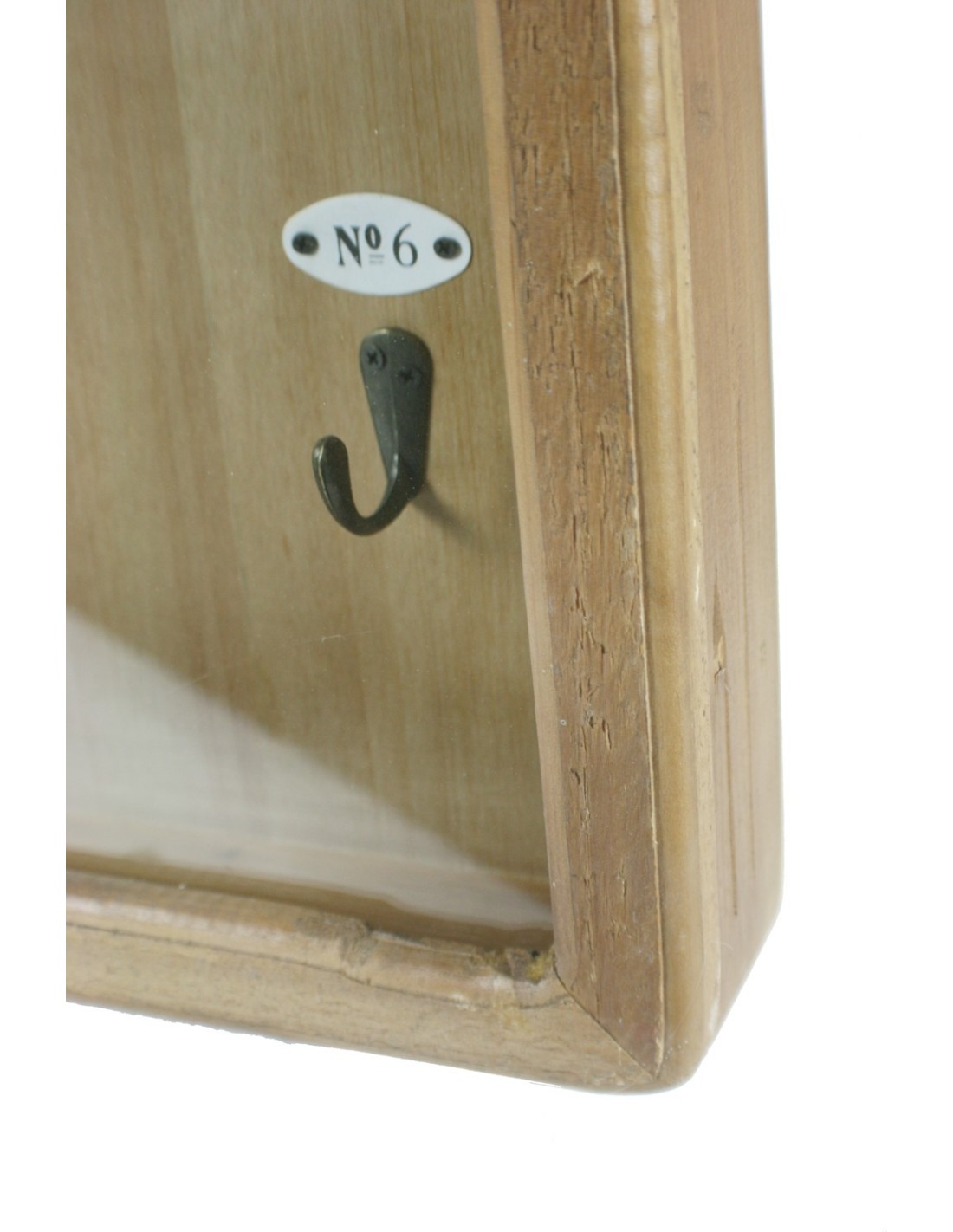 Aquesta petita vitrina de fusta amb acabat rústic és perfecta per mantenir les claus ordenades ia la vista. Ideal per penjar a l'entrada, la cuina o qualsevol racó de la llar, aporta calidesa i organització amb un encant molt especial.