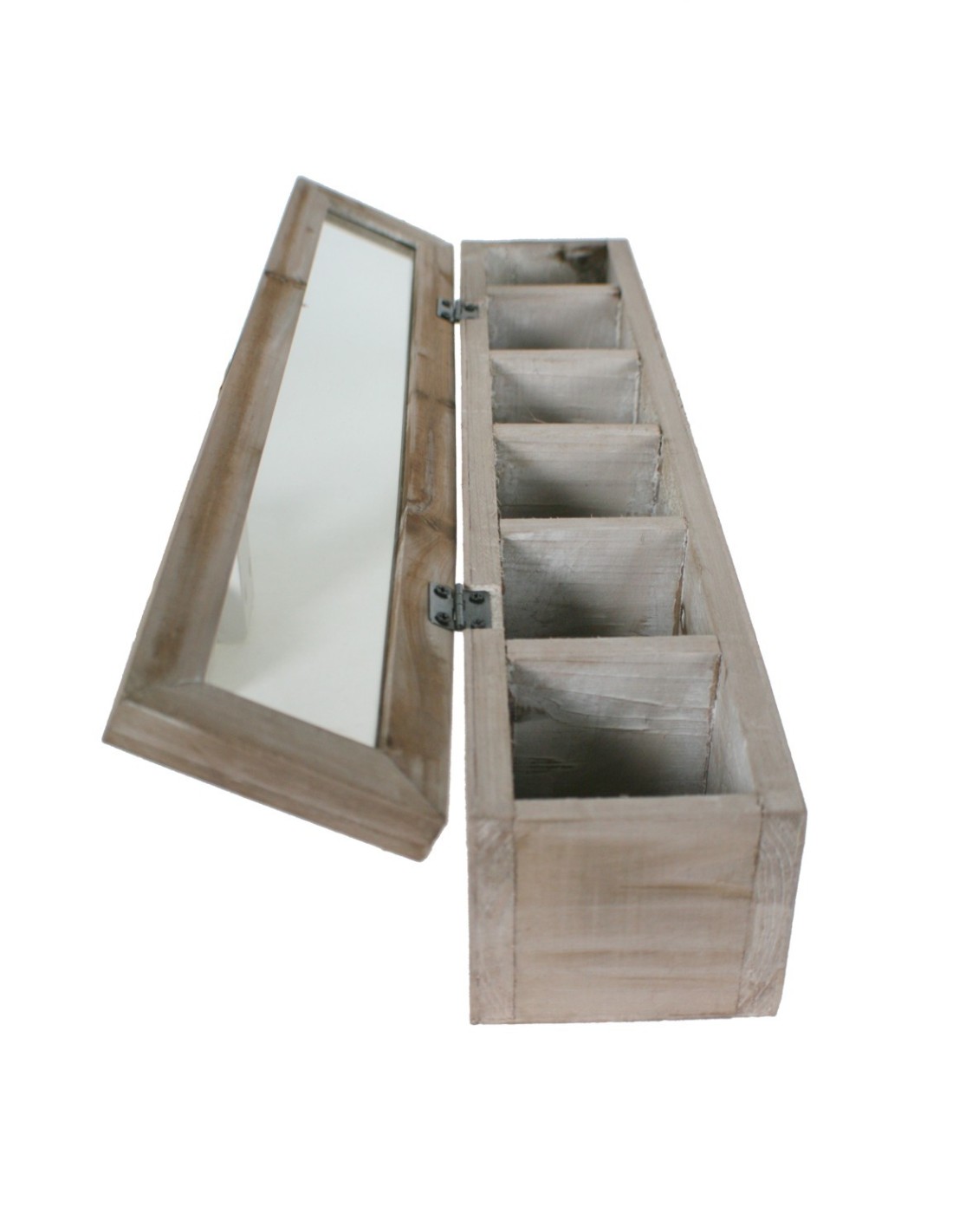 Caixa emmagatzematge te bossetes infusions caixa de fusta amb 6 compartiments estil vintage. Mesures: 9x46x9 cm.