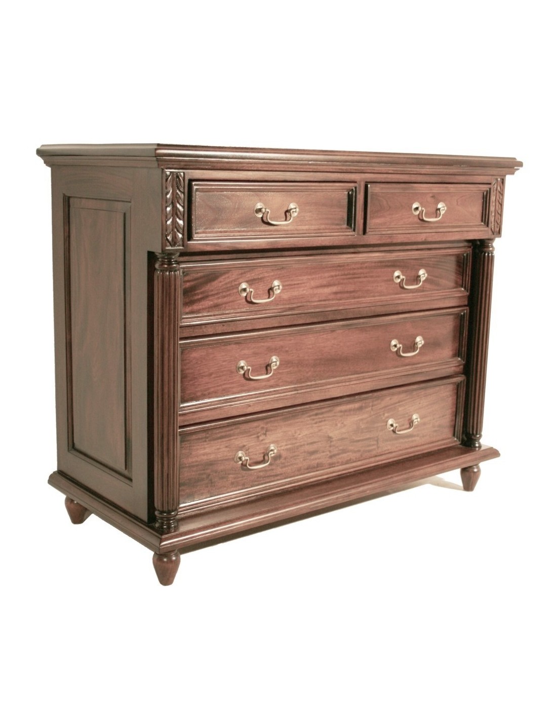 Còmoda Colonial de Fusta Massissa de Caoba, Cinc Calaixos, Estil Clàssic de gran Qualitat. Mides: 91x51x110 cm.