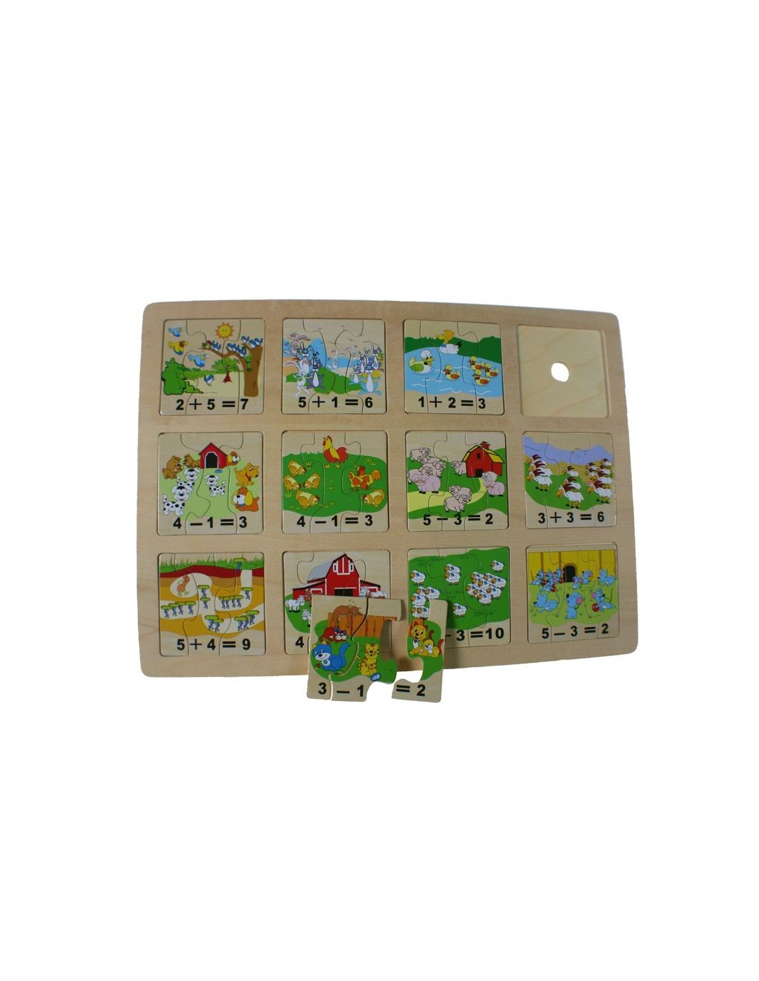 Puzle de fusta per encaixar, joc educatiu de càlcul aritmètica, sumar i restar joc infantil. Mides: 30x41 cm.
