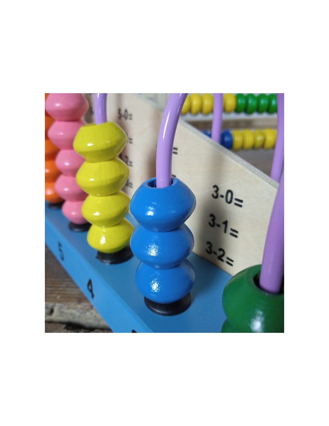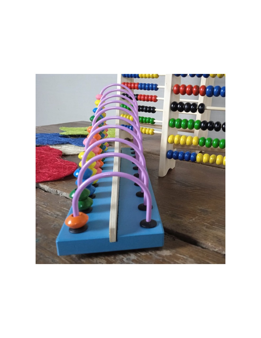 Àbac de fusta amb acolorides perles envernissades que llisquen per 10 vares de metall. Aquest clàssic instrument, considerat el més antic per al càlcul, ha estat adaptat i apreciat en diverses cultures. És una joguina educativa ideal per fomentar el raonament i l'aprenentatge en nens d'educació infantil i primària.