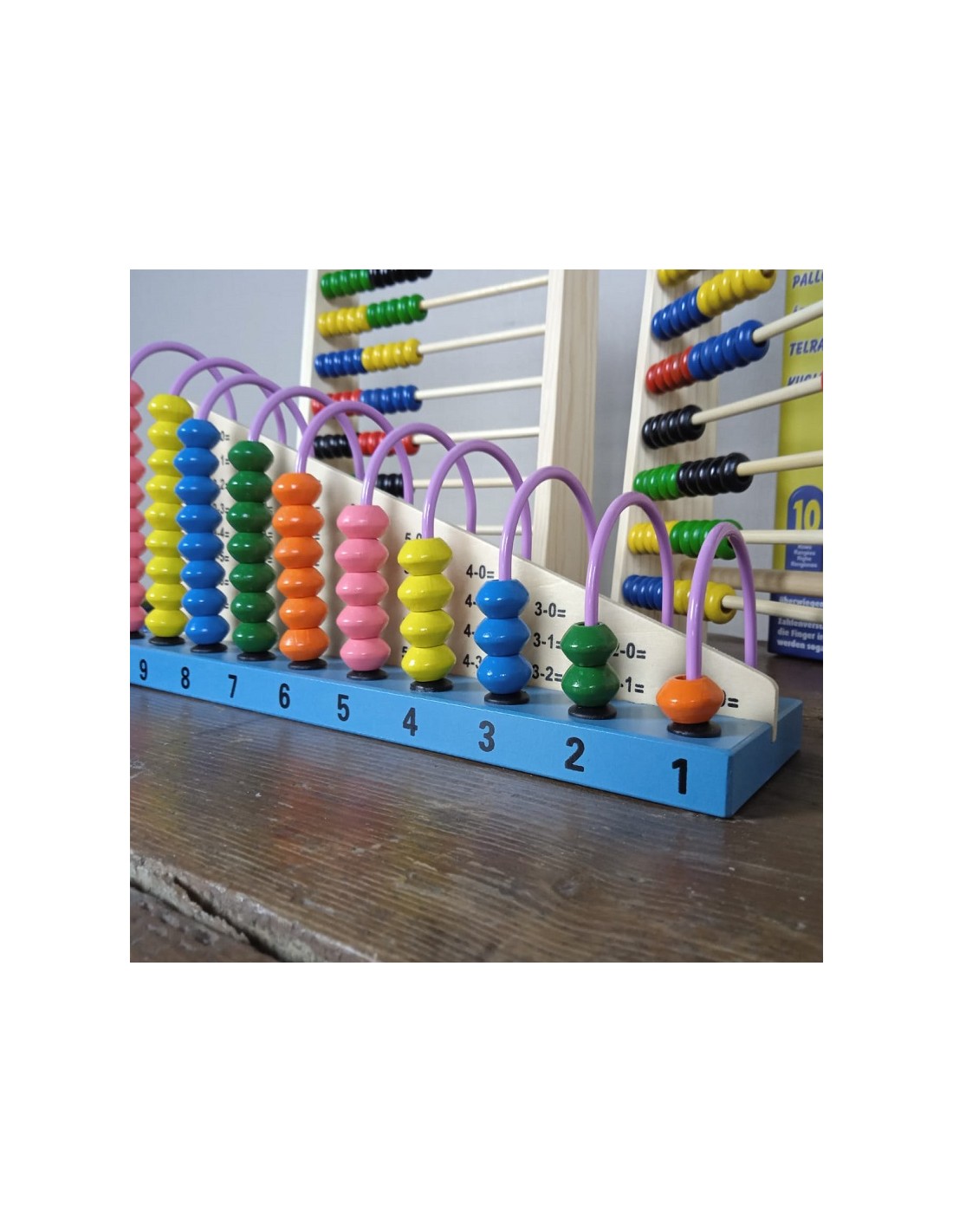 Extres: Inclou 55 tasques de sostracció i 55 tasques d'addició impreses a la taula mitjana de l'estructura de fusta.