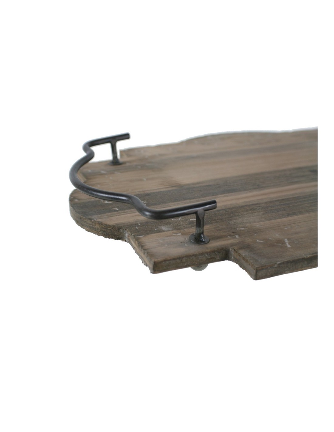 Safata de fusta massissa amb nansa de metall i acabat estil vintage. També la pots utilitzar com un original fruiter o simplement de centre de taula. És un article únic i senzill que et combinarà amb els teus mobles i et llaura una estada confortable.