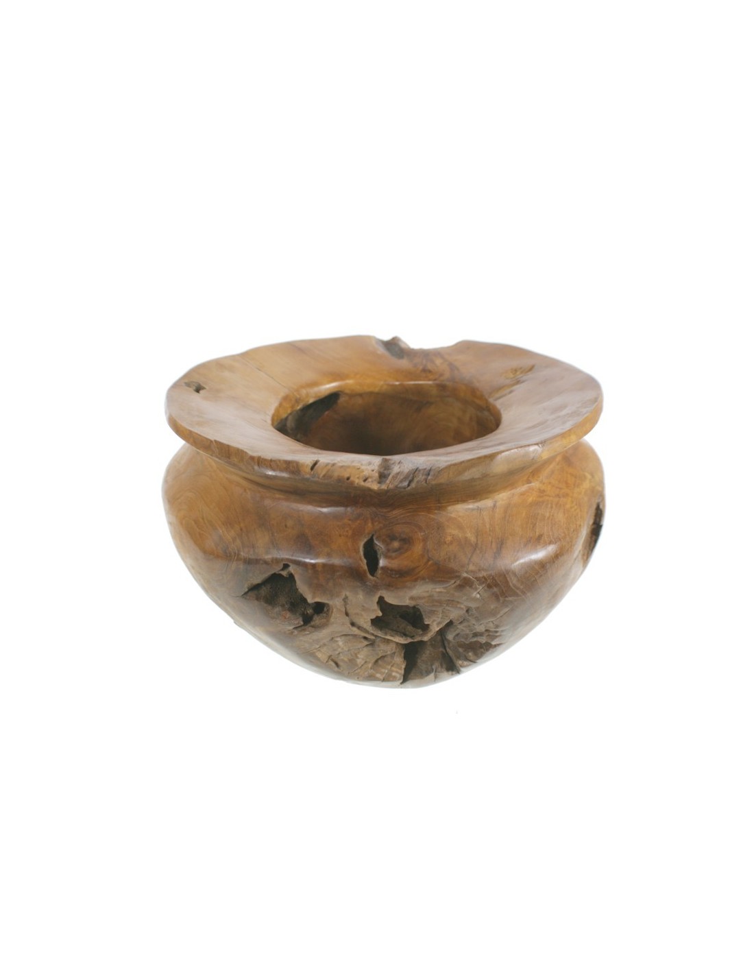 Centre per a taula gerro de fusta teca massissa irregular. Mesures: 20xØ30 cm.