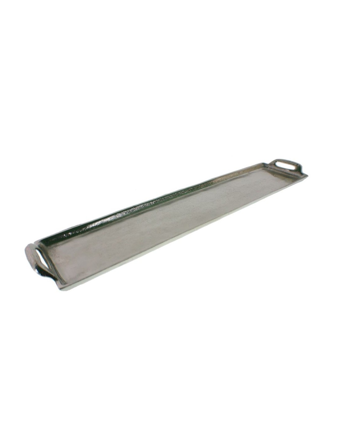 Safata llarga buidabutxaques d'alumini estil vintage per decoració i organitzadora llar ideal regal. Mesures: 3x61x13 cm.