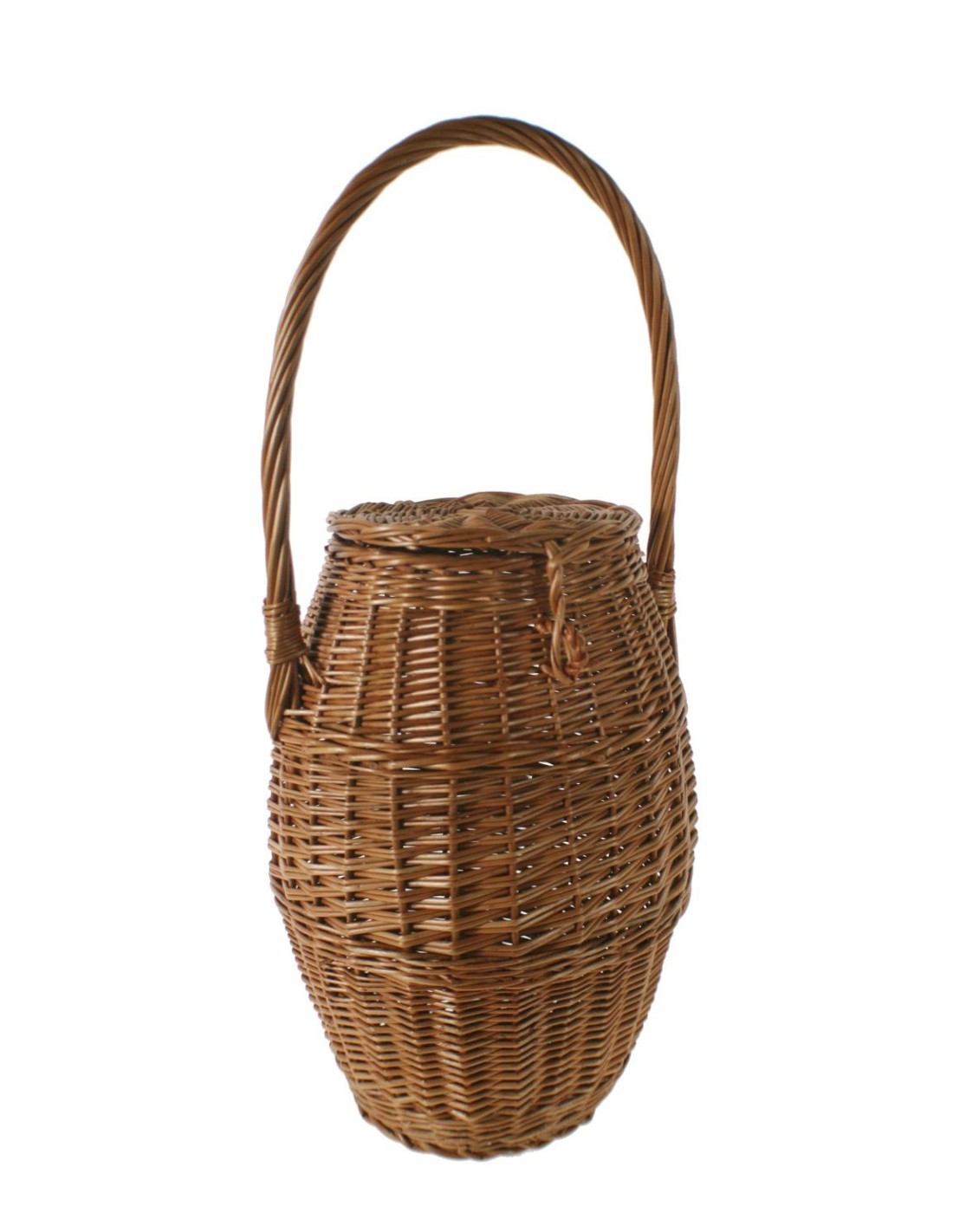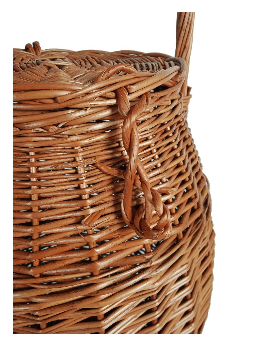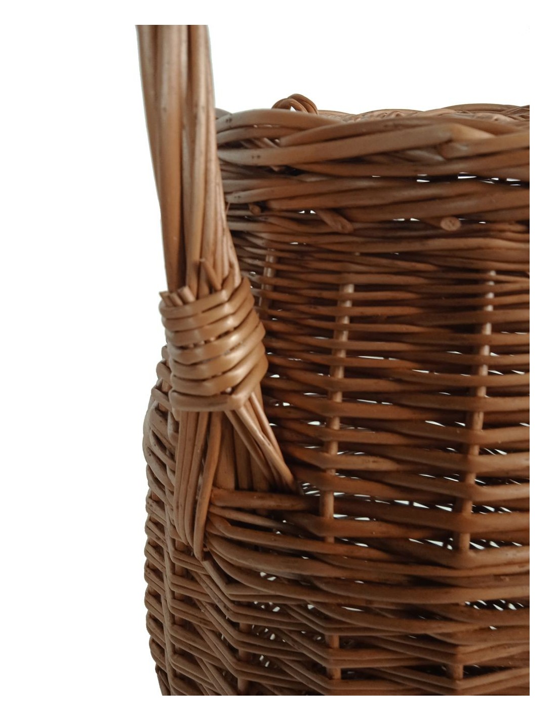 Caragolera artesanal gran de vímet color mel amb nansa de transport. Mesures: 67xØ26 cm.