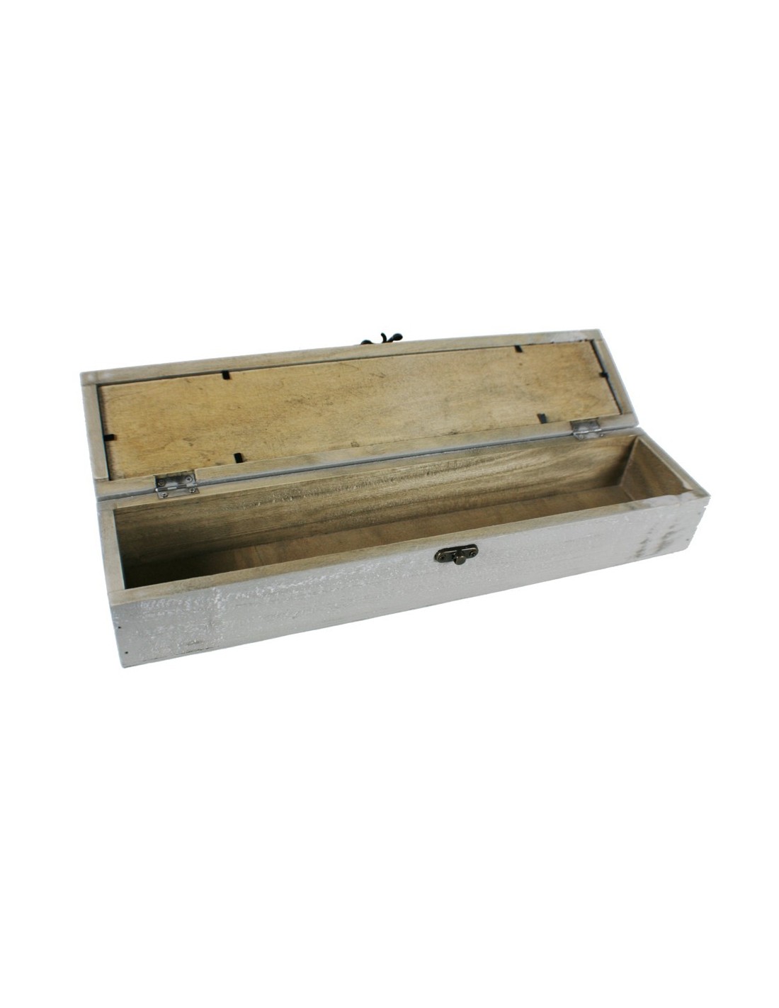 Cosidor petit de fusta decorada color gris amb finestra a tapa. Mides totals: 8x40x9 cm.