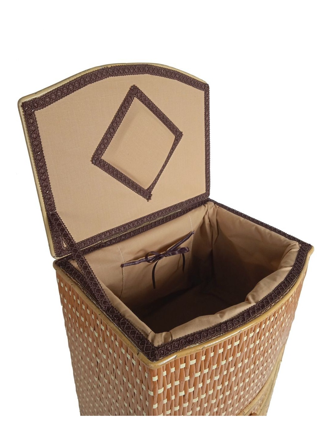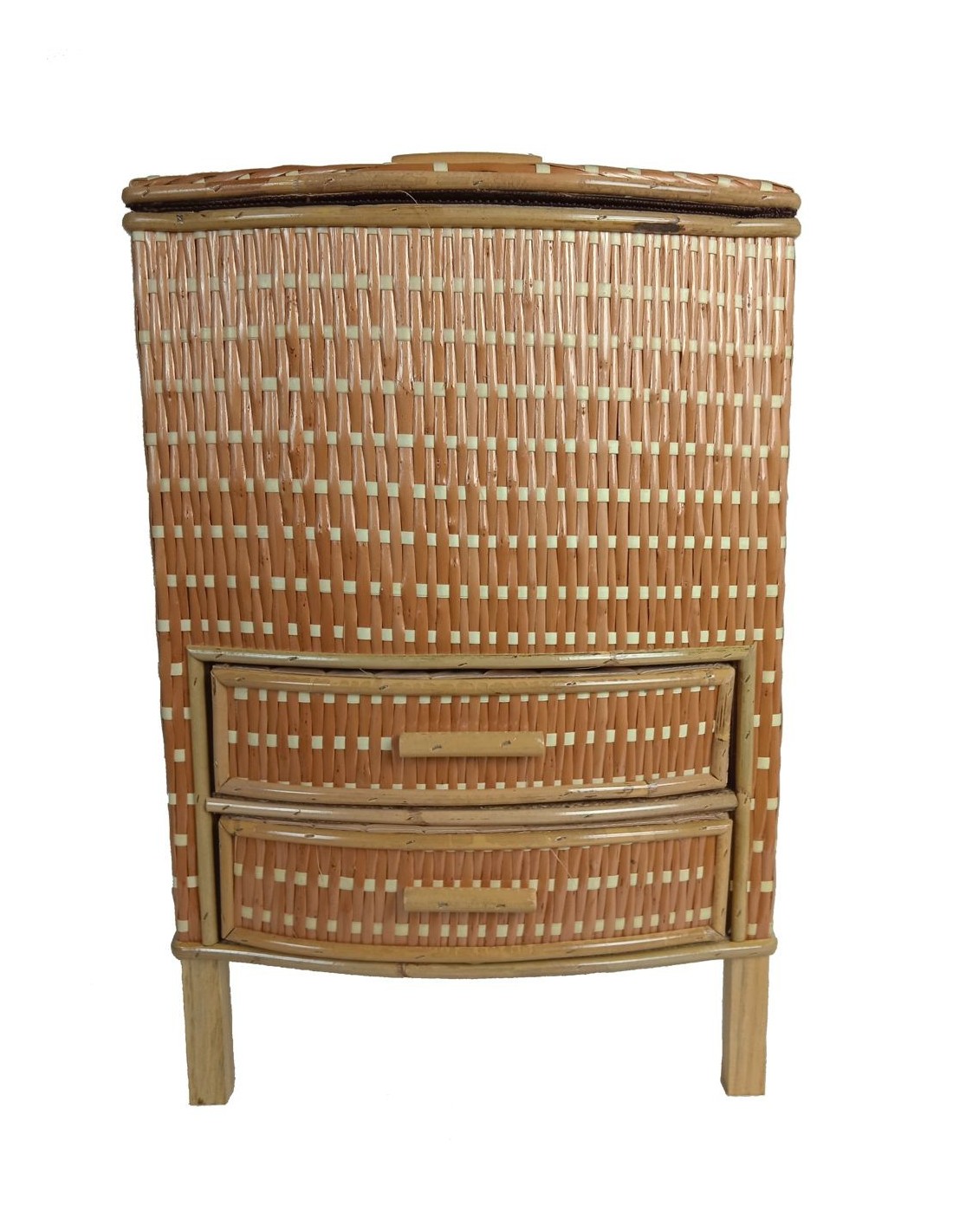 Costurer de vímet alt color mel amb dos calaixos inferior de gran capacitat per a la costura i labors. Mides: 49x32x26 cm.