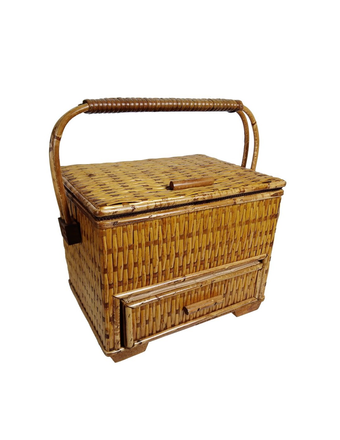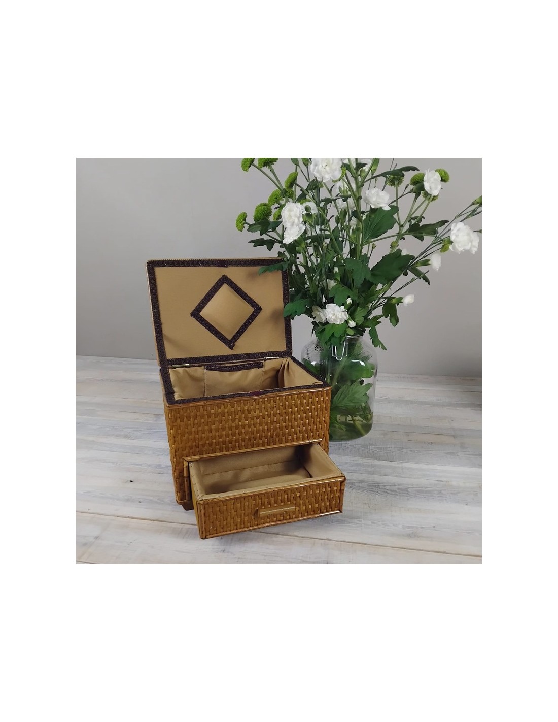 Costurer Gran de Vímet Natural amb Nansa i Calaix, Emmagatzematge, Labors de Costura. Mides: 23x30x20 cm.