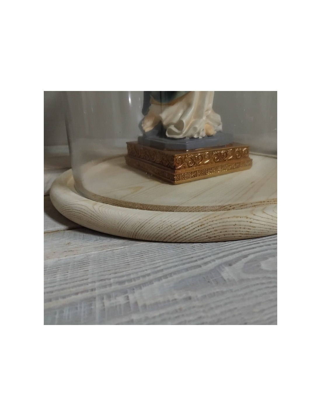 Cúpula campana de vidre amb base de fusta natural sense tractar, ideal per ressaltar i protegir figures, col·leccions i elements decoratius a casa teva, aparador o vitrina.