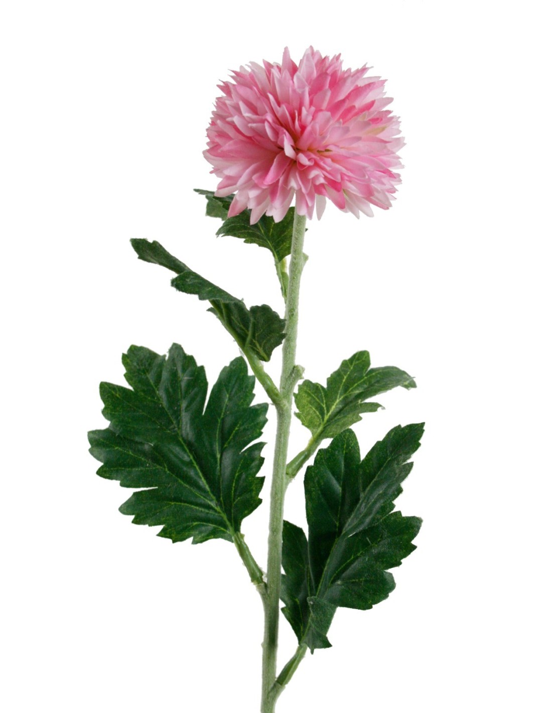 Flor artificial Crisantem rosa amb pètals de tela i tija llarga decoració adorn llar. Mides: 60x6x6 cm.