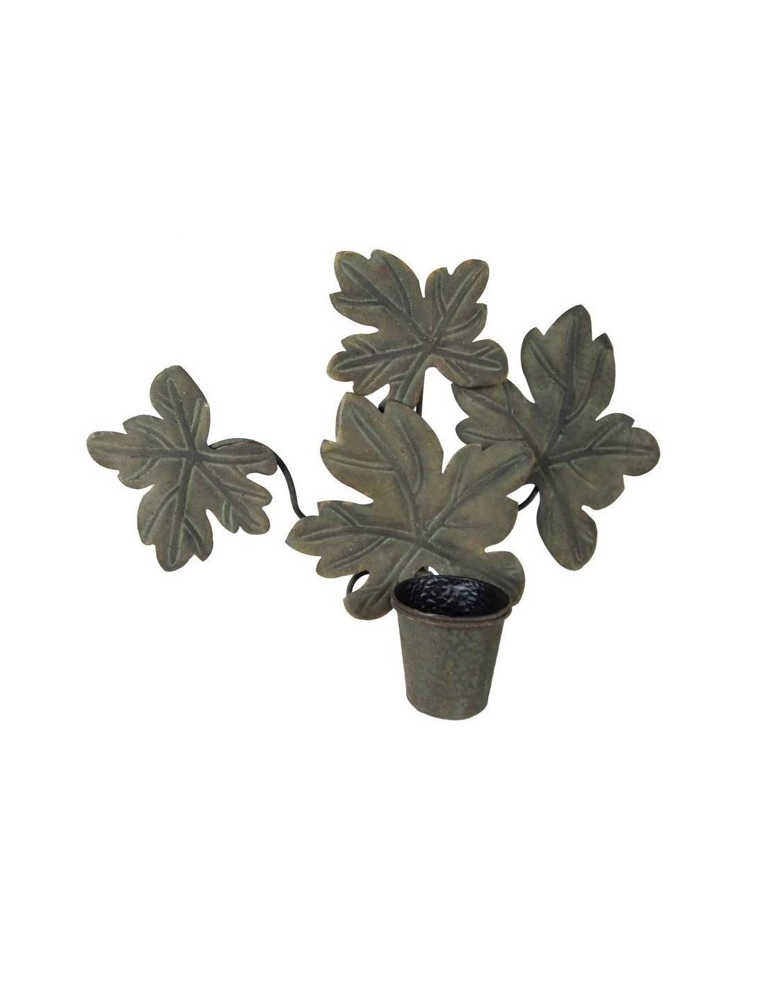 Porta test per penjar a la paret amb decoració de fulles en metall, un preciós test per a plantes, si ets amant de les flors o plantes et decorarà en qualsevol racó de la teva llar. Dóna-li al teu espai aquest toc viu i rústic que et connecta amb l'essència més autèntica de la natura.