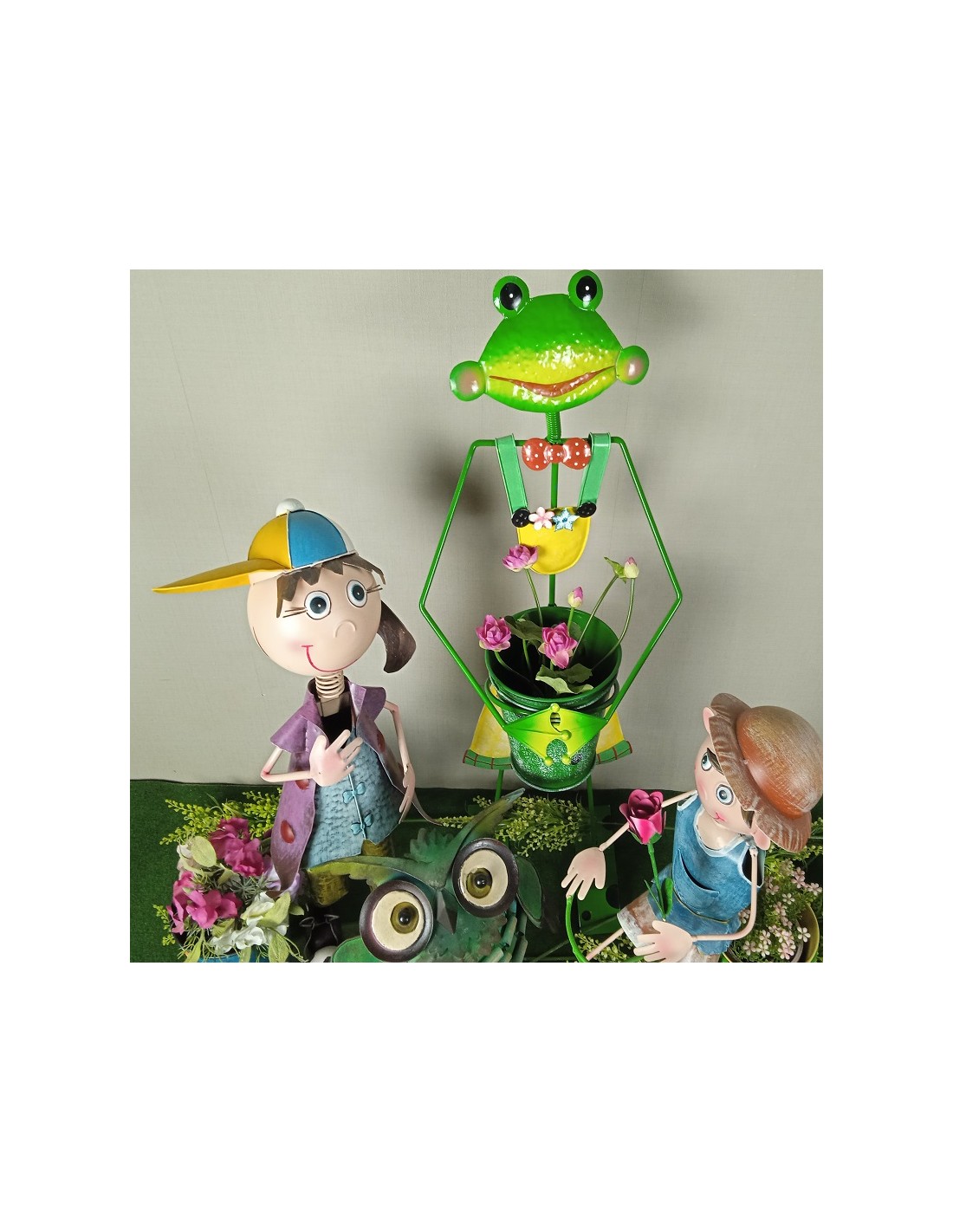 Dona-li un toc d'alegria i encant al teu jardí amb aquest adorable Granota de Planxa amb Porta testos! Aquesta figura encantadora combina la funcionalitat d'un test amb l'atractiu d'una decoració divertida per a la llar. Amb el seu disseny gran i vistós, aquesta granota verda es convertirà en el centre d'atenció del teu jardí, afegint un toc de color i diversió al teu espai exterior.
