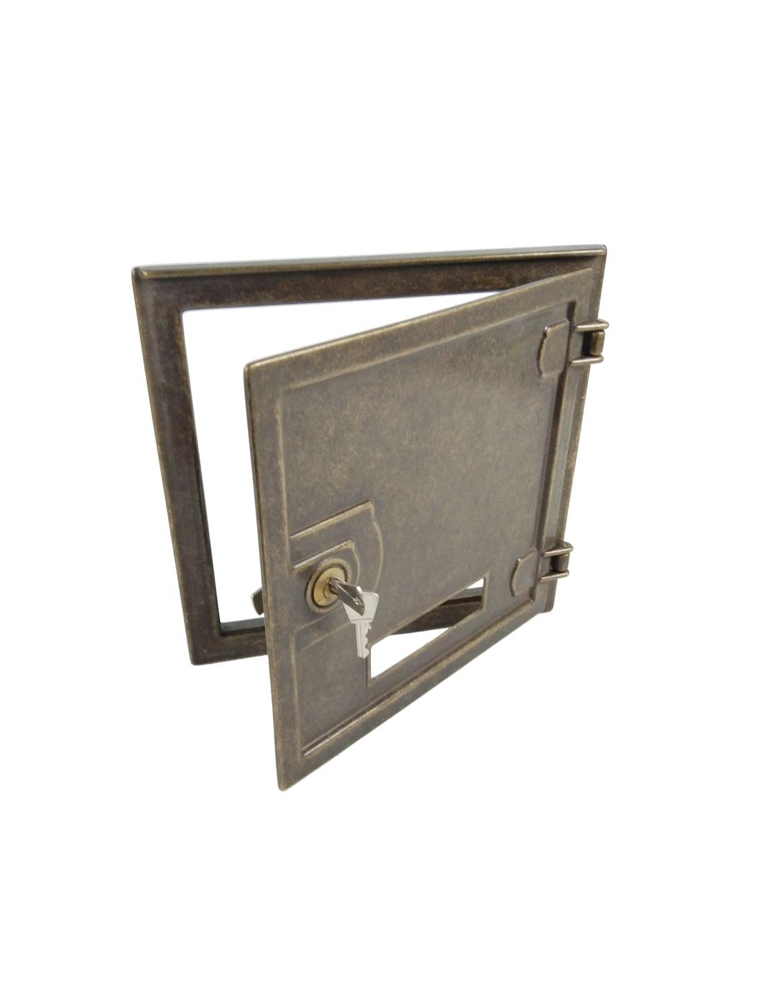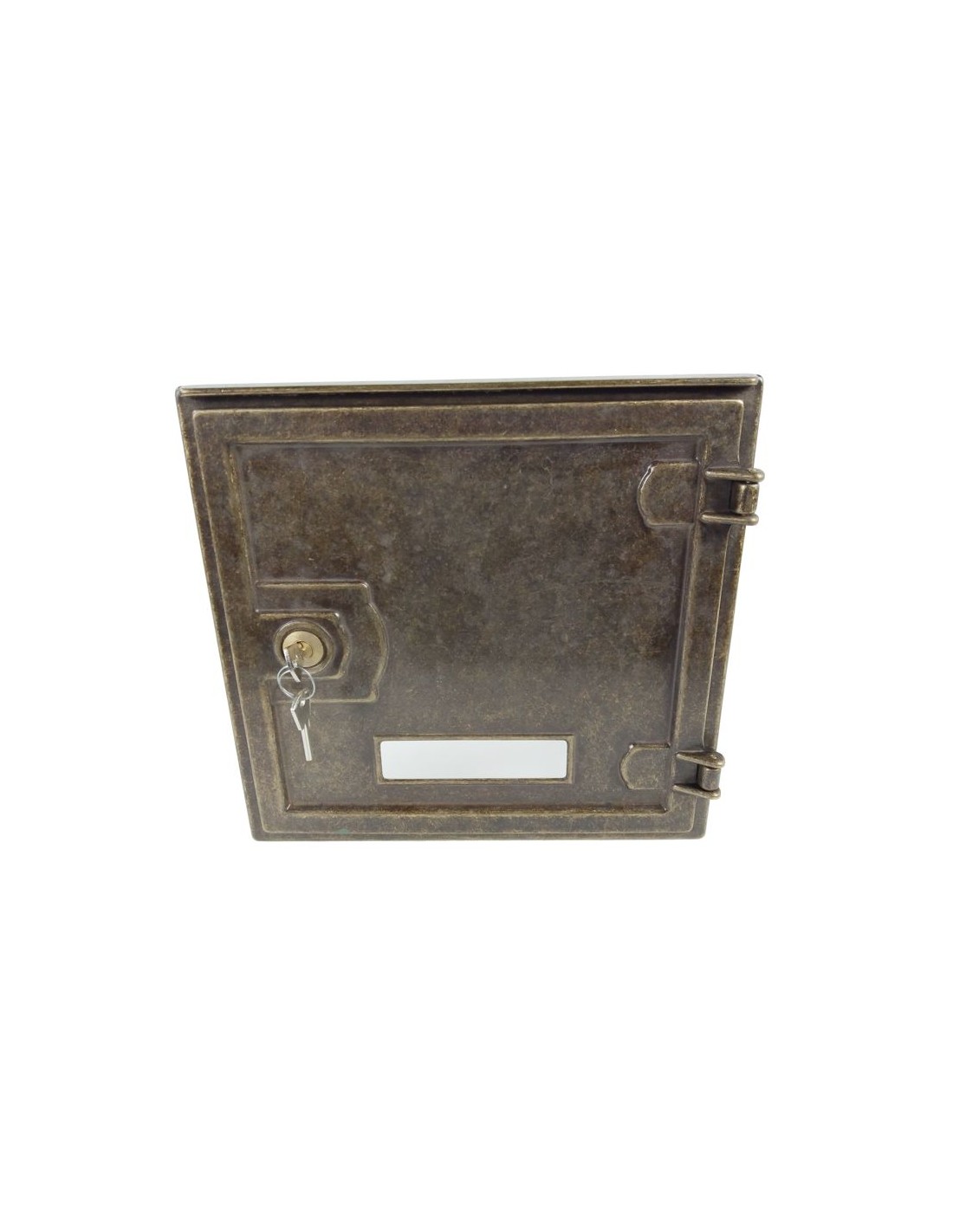 Aquest marc amb porta està fabricat amb llautó massís, un material noble que resisteix perfectament la intempèrie i conserva el seu aspecte amb el pas del temps. És ideal per instal·lar a murs d'entrada o façanes, oferint una solució pràctica i decorativa per a la recepció del correu.