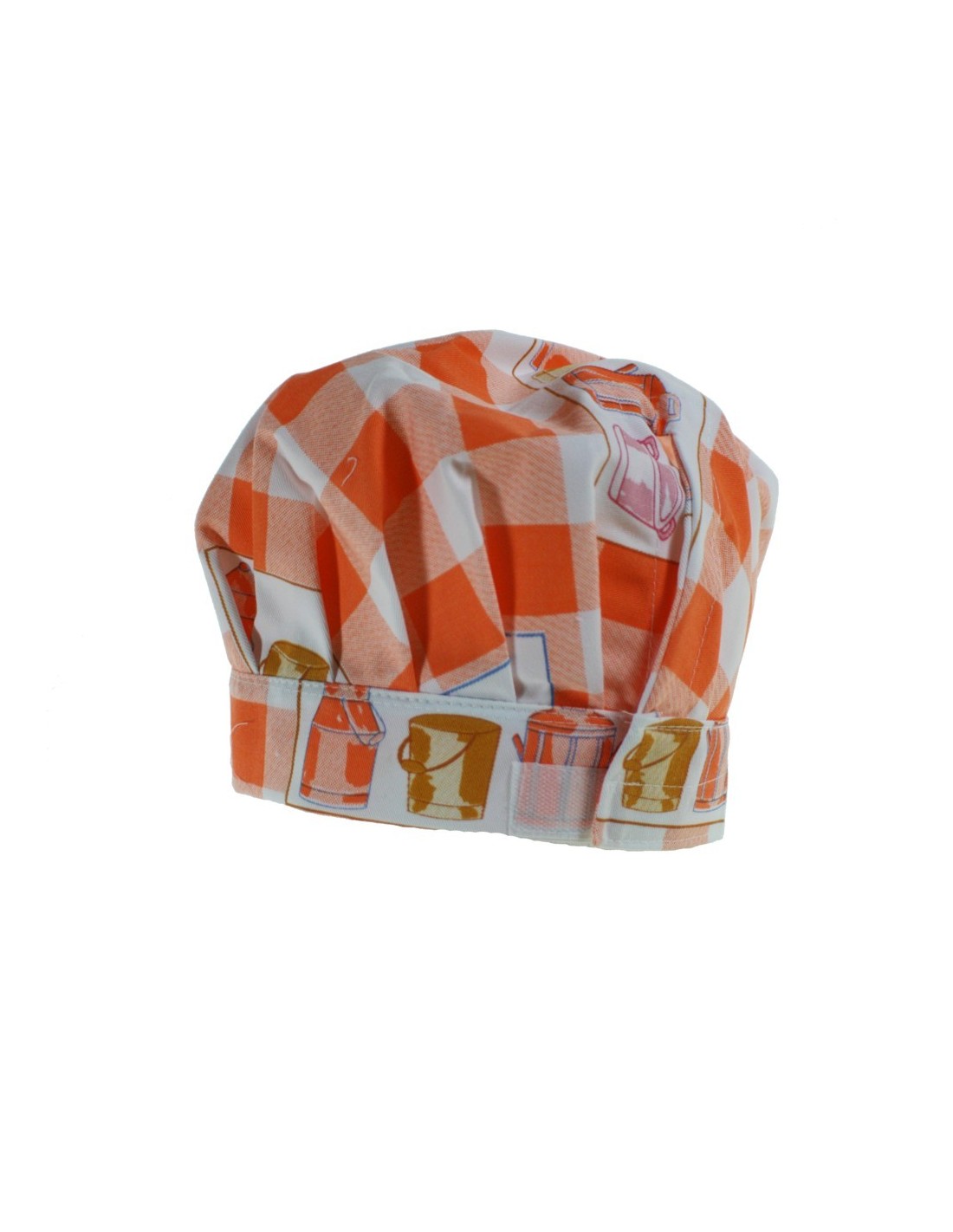 Davantal infantil amb gorra disseny a quadres de color taronja.