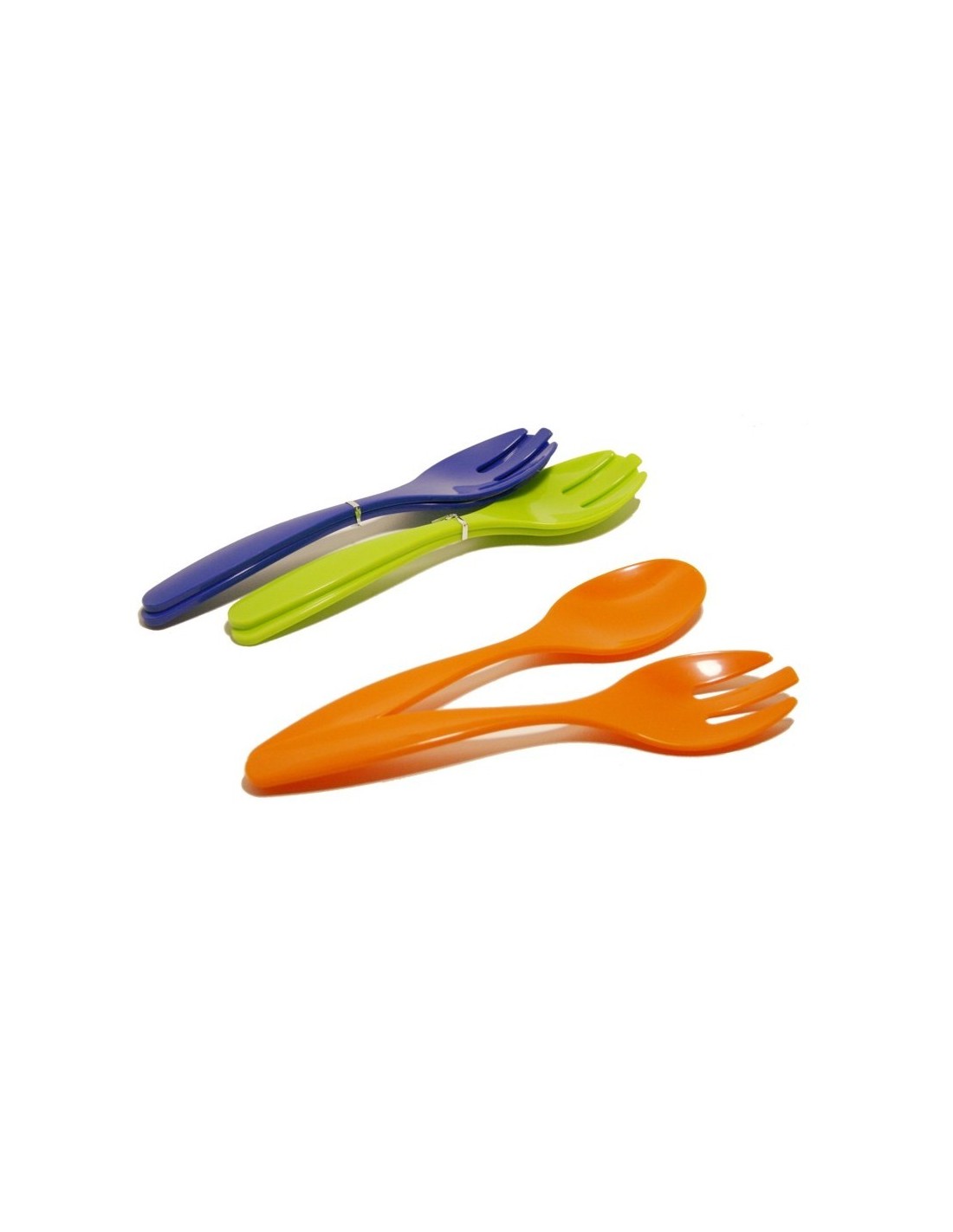 Joc de coberts per servir l'amanida format de cullera i forquilla de material de melamina. Et donarà un toc divertit als teus menjars saludables. Aquest serà un regal perfecte per a les persones que els agradi les amanides.