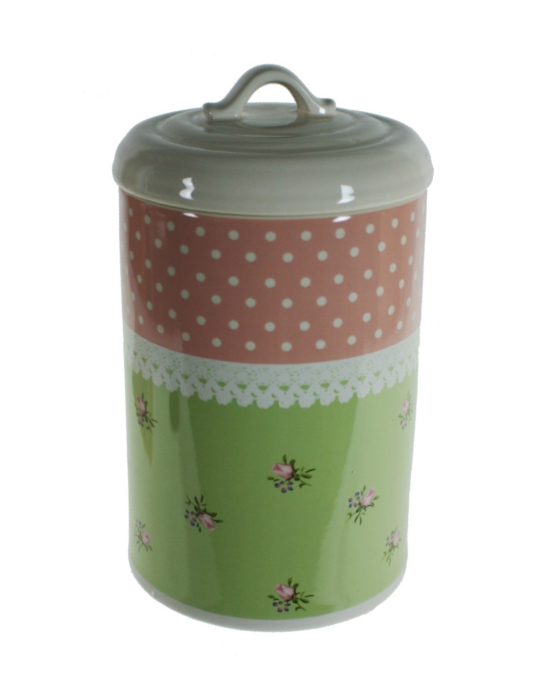 Pot i accessori de cuina de ceràmica decorat estil vintage nostàlgic, pot per emmagatzemar. Mides: 20xØ11 cm.