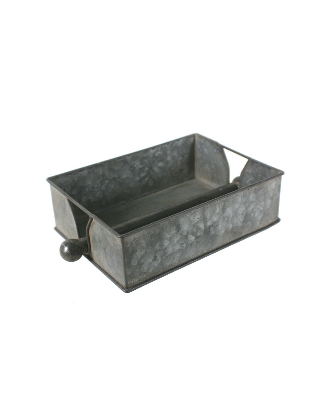 Pràctic i decoratiu dispensador de tovalloletes o kleenex amb acabat metàl·lic en estany, ideal com a detall original per al bany, cuina o menjador. Amb barra prensor central per facilitar-ne l'ús i el disseny d'inspiració vintage.