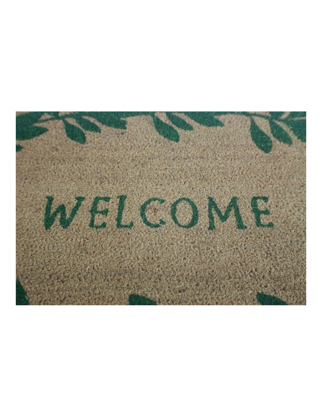 Felpudo Rectangular Gran Color Verd Disseny Welcome de Fibra Coco per a Porta Entrada Llar Jardí o Terrassa.Mides:75x45 cm.