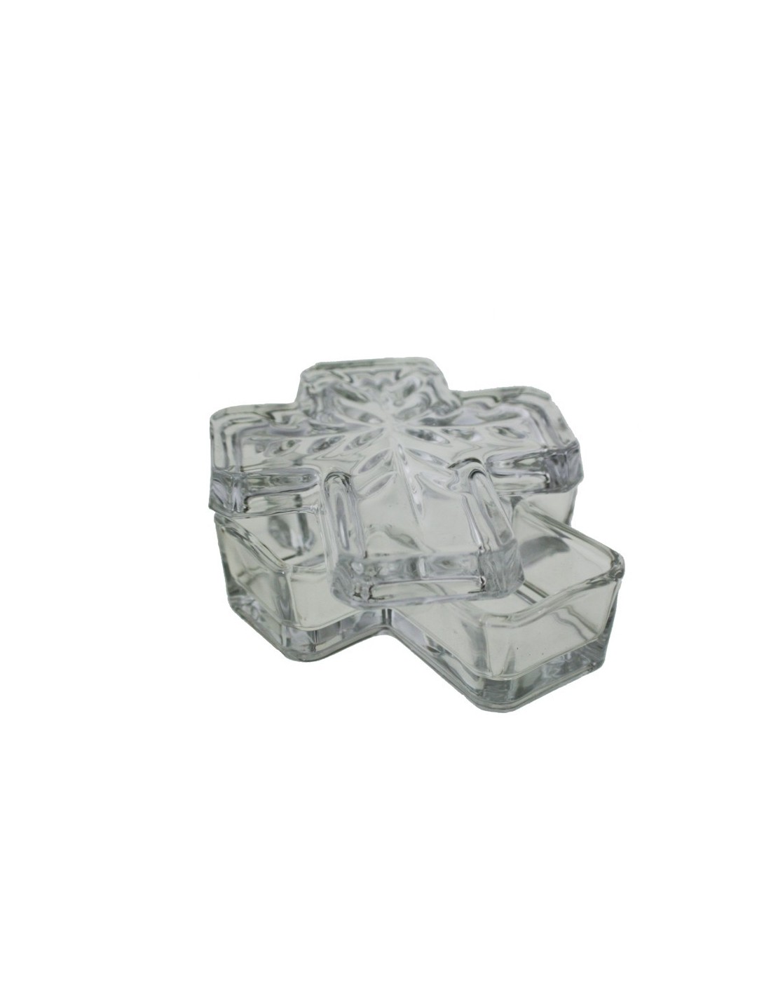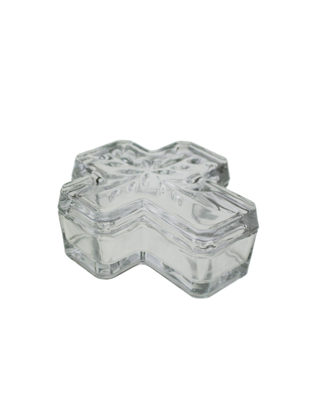 Caixa de Cristall Petita en Forma Creu Estil Clàssic Decoració de la Llar. Mides: 5x10x11 cm.