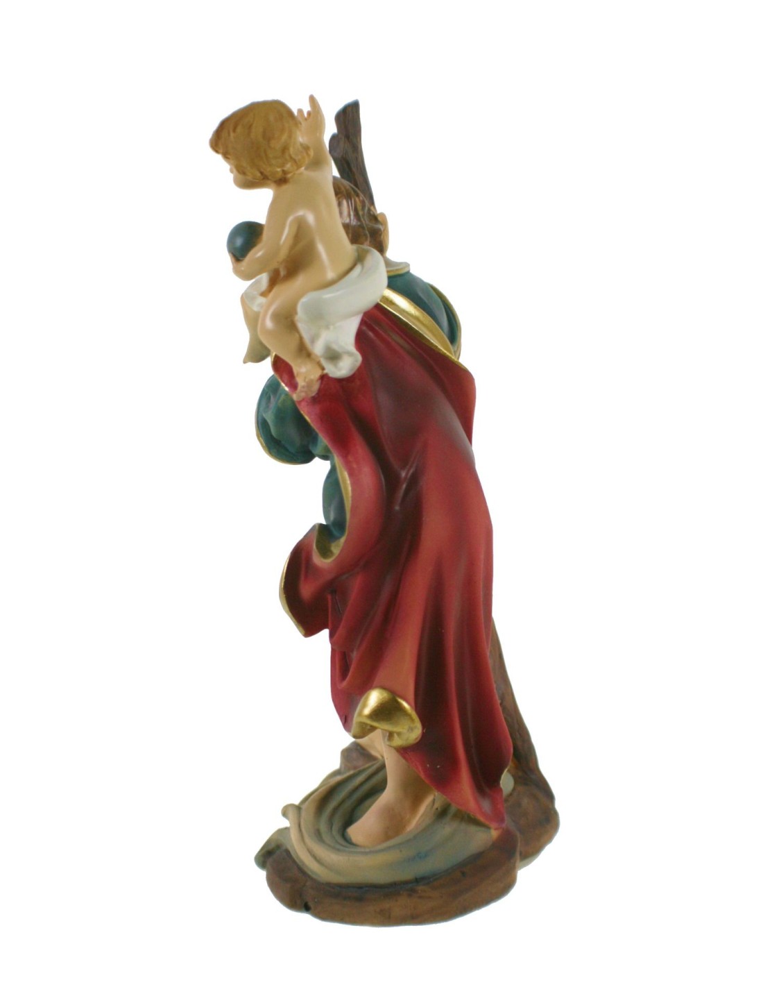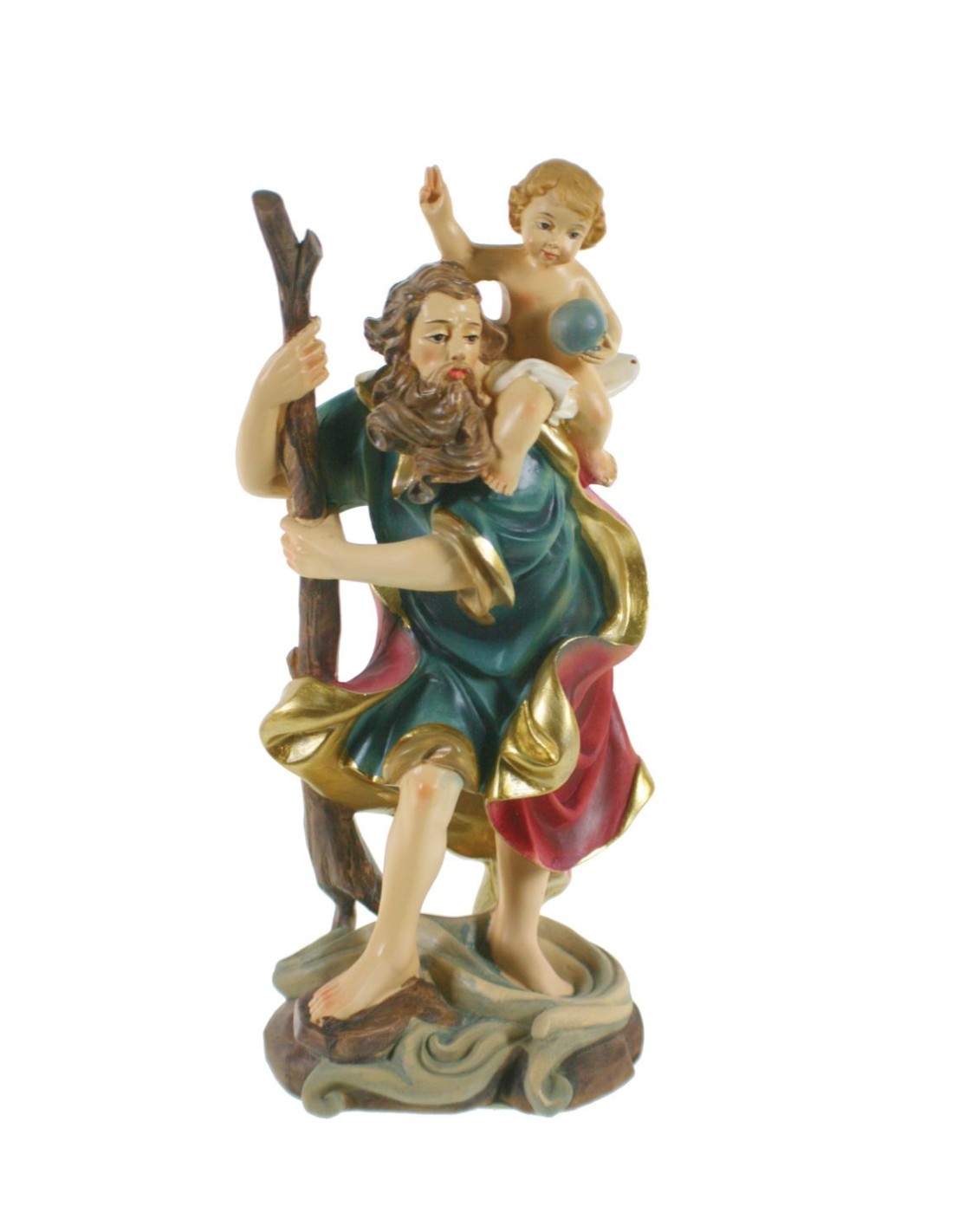 Protegeix els teus viatges amb la figura de Sant Cristòfol, patró dels transportadors i automobilistes. Aquesta figura de resina, pintada a mà, és ideal per als que busquen la benedicció i protecció durant els desplaçaments.