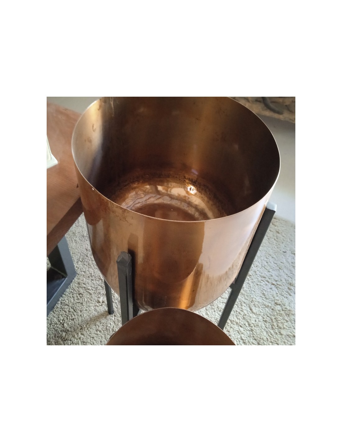 Aquest joc de dos testos combina una elegant base de color coure amb potes de metall negre en dues alçades diferents, convertint-los en un complement ideal per a la decoració dʻinteriors. Ja sigui que vulguis donar la benvinguda als teus convidats a l'entrada de casa teva amb un toc de nostàlgia i calidesa, o transformar la teva oficina o vestíbul en un espai que reflecteixi el teu estil únic.