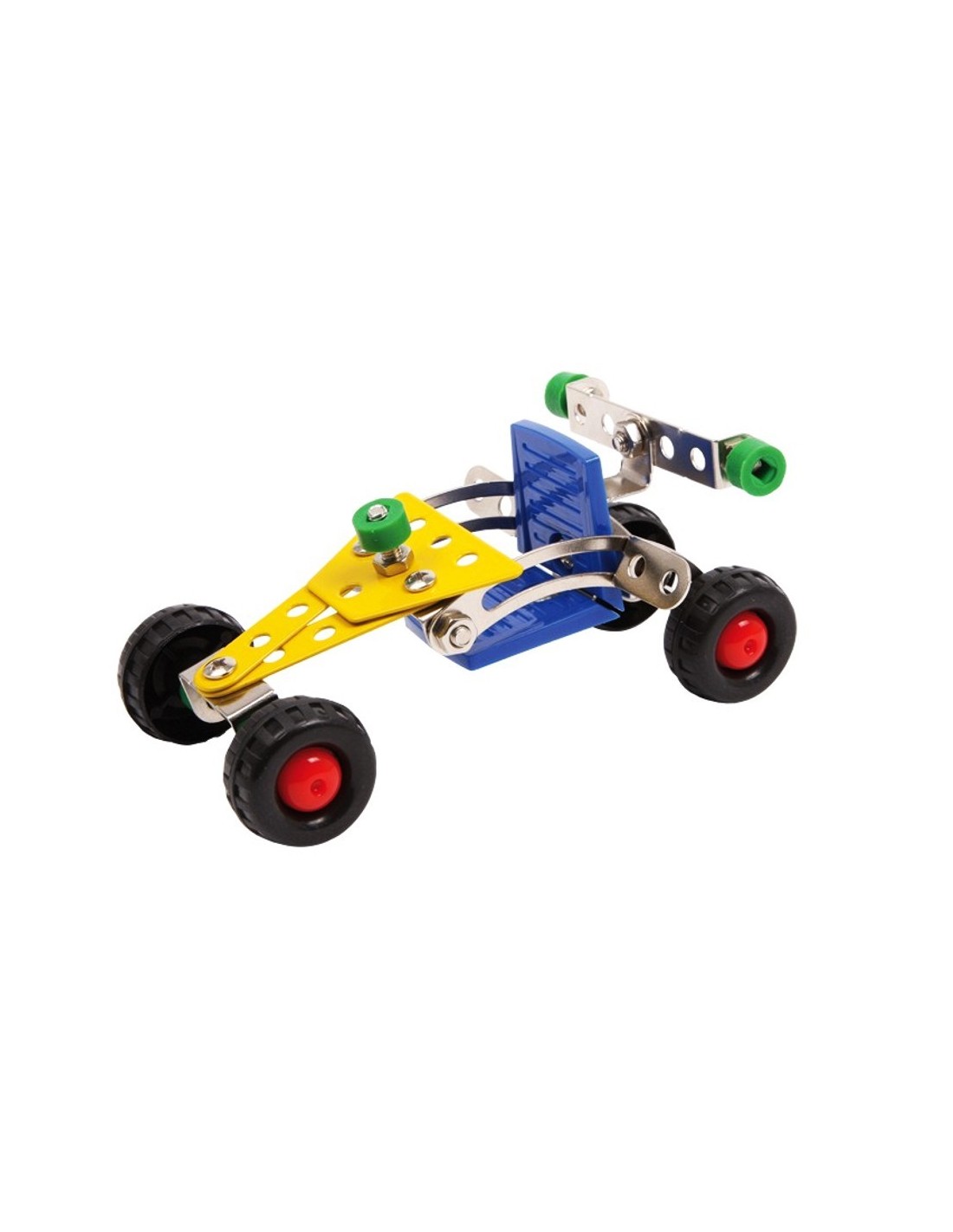 El set inclou un tornavís i claus ajustades a les peces, juntament amb rodes de pneumàtics de goma per a un acabat autèntic. Cada peça de metall i plàstic està finament treballada per a una construcció estable i segura. Amb aquest complet equip d'eines, els petits constructors poden desenvolupar destreses motores mentre exploren el món del bricolatge.